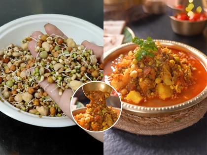 श्रावण म्हटलं की यात अनेक उपवास आणि सण साजरे केले जातात.(Usal Recipe) उपवासाच्या पदार्थांची आपल्याला विविध पदार्थांची चव चाखली जाते.(festive food ideas) या काळात बऱ्यापैकी लोक उपवास करतात. उपवास सोडताना अनेकांच्या ताटात गोडासह तिखट पदार्थ देखील असतो. जर आपल्यालाही काही तिखट चमचमीत पदार्थ हवा असेल तर मिक्स कडधान्याची उसळ बनवू शकतो.(Maharashtrian usal recipe) महाराष्ट्रातील पारंपरिक आणि पौष्टिक डिश मिक्स कडधान्याची उसळ. यात हरभरा, मटकी, मूग, वाल, चवळी असे अनेक कडधान्य असतात. विविध मसाले घालून या भाजीची चव आणखी वाढवली जाते. (protein-rich Indian curry)कडधान्याची उसळ ही केवळ चविष्ट नसून आरोग्यासाठी फायदेशीर देखील आहे.(Indian lentil curry) यात प्रोटीन, फायबर, व्हिटॅमिन्स आणि मिनरल्स मुबलक प्रमाणात मिळते. ही उसळ पोळी, भाकरी, भात किंवा पावासोबत आवडीने खाल्ली जाते. (spicy lentil recipes)
