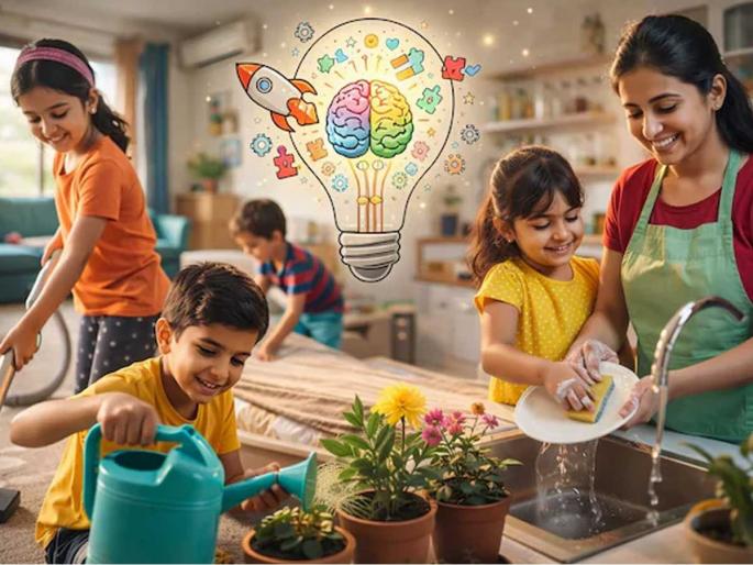 जेव्हा आपले मूल घरातील साधी किंवा छोटी कामे करत असेल तर त्याच्या मेंदूला चालना मिळण्यास मदत होते. यामध्ये त्यांना निर्णयक्षमता, तर्कशक्ती आणि शारीरिक समन्वय यांचा समावेश करता येतो. ही कामे मुलांच्या एक्झिक्युटिव्ह फंक्शनला वेगाने विकसित करतात, ज्यामुळे त्यांची एकाग्रता वाढते.