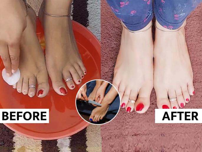 1 / 8हिवाळ्यात तळपायांच्या भेगा खूपच वाढतात. त्यामुळे तळपाय अगदी खरखरीत होऊन जातात (Winter Foot Care Tips). त्वचा काेरडी पडल्यामुळे अगदी काळवंडून गेलेले दिसतात.(how to remove tanning and dead skin from feet)2 / 8अशा पायांसाठी पार्लरमध्ये जाऊन कोणतीही महागडी ट्रिटमेंट घेण्यापेक्षा घरीच अगदी सोप्या पद्धतीने घरगुती साहित्य वापरून पेडिक्युअर करा. पायांचा खरखरीतपणा, काळेपणा जाऊन पाऊलं अगदी नाजूक, सुंदर दिसतील. घरच्याघरी पेडिक्युअर कसं करायचं, याविषयीचा व्हिडीओ syedakainat20 या इन्स्टाग्राम पेजवर शेअर करण्यात आला आहे.(5 step pedicure at home)3 / 8सगळ्यात आधी एका टबमध्ये गरम पाणी घ्या. त्यामध्ये बेकिंग सोडा, शाम्पू आणि लिंबाचा रस टाका. १० ते १५ मिनिटे या पाण्यात पाय बुडवून बसा.4 / 8त्यानंतर पाय स्वच्छ पुसून घ्या आणि ॲलोव्हेरा जेल लावून पायाला मसाज करा. यानंतर dermaplaning razor वापरून पायावरची डेडस्किन काढून टाका.5 / 8पायावरची डेडस्किन काढून टाकल्यानंतर त्यावर तांदळाचं पीठ, मुलतानी माती आणि गुलाबपाणी यांच्यापासून तयार करण्यात आलेला लेप लावा. हा लेप १५ मिनिटे पायावर राहू द्या आणि त्यानंतर चोळून काढून टाका.6 / 8पाय स्वच्छ धुतल्यानंतर त्यांना मॉईश्चरायझर लावा आणि १५ मिनिटांसाठी सिलिकॉन सॉक्स घालून ठेवा. सिलिकॉन सॉक्स नसतील तर एखादी जाडसर पिशवी पायाभोवती गुंडाळून टाका.7 / 8त्यानंतर १५ मिनिटांनी पायाला एखादं सिरम किंवा खोबरेल तेल, बदाम तेल यापैकी काहीही लावून मसाज करा. 8 / 8एखादं छानसं नेलपेंट लावलं की बघा तुमचे काळवंडलेले पाय आता किती छान, नाजुक दिसू लागतील..