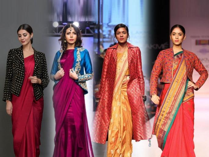 1 / 10१. नेहमी त्याच त्या टिपिकल पद्धतीने साडी नेसण्यापेक्षा यंदा लग्नसराईमध्ये तुम्ही साडी विथ जॅकेट असा स्टायलिश लूक करू शकता. 2 / 10२. मागील एक- दोन वर्षांपासून जॅकेटवाल्या साडीचा ट्रेण्ड इन आहे. शिवाय या पद्धतीच्या साड्यांची आणखी एक खासियत म्हणजे दिवाळीनंतरच्या लग्नसराईमध्येच ही फॅशन जास्त केली जाते.3 / 10३. यामागचं मुख्य कारण म्हणजे दिवाळीनंतर येणारी थंडी. अशा पद्धतीचं जॅकेट साडीवर घातल्याने हमखास स्टायलिश लूक मिळतो, हे तर आहेच. पण या दिवसांत असणाऱ्या थंडीपासून संरक्षण म्हणूनही 'साडी विथ जॅकेट' घेण्याकडे अनेकींचा कल असतो.4 / 10४. माधुरी दिक्षितने जसं घातलं आहे, तशा शॉर्ट जॅकेटपासून ते लाँग जॅकेटपर्यंत अनेक वेगवेगळ्या प्रकारचे जॅकेट उपलब्ध आहेत.5 / 10५. कतरिना कैफचं हे लाँग जॅकेट अतिशय भरजरी आहे. तुमच्याकडे असणाऱ्या साडीनुसार मॅचिंग कपडा घेऊनही तुम्ही अशा पद्धतीचे वेगवेगळे जॅकेट शिवून घेऊ शकता.6 / 10६. सोनम कपूरचं जाळीदार जॅकेटही अतिशय आकर्षक लूक देणारं आहे. यामध्ये साडीच्या रंगाशी कॉन्ट्रास्ट जॅकेट घेतलं तर ते अधिक उठून दिसू शकतं. 7 / 10७. एखाद्या फॉर्मल पार्टीसाठी साडी नेसणार असाल तर शिल्पा शेट्टीप्रमाणे असं सिंपल, सोबर जॅकेट निवडू शकता.8 / 10 ८. फॉर्मल साडीवर घालता येईल, अशा फॉर्मल जॅकेटचा हा आणखी एक प्रकार. एखाद्या ऑफिस पार्टीसाठी किंवा ऑफिस मिटिंगसाठी हा लूक छान दिसू शकतो.9 / 10९. फॉर्मल लूक प्रकारात मोडणारं हे आणखी एक जॅकेट. असं एकच जॅकेट तुम्ही वेगवेगळ्या साड्यांवरही ट्राय करू शकता. कॉटन किंवा प्लेन सिल्क साड्यांवर हे जॅकेट छान दिसेल.10 / 10१०. एखाद्या पार्टीसाठी किंवा रिसेप्शनसाठी अगदी स्टायलिश लूक करायचा असेल, तर करिश्मा कपूरचा हा लूक ट्राय करू शकता.