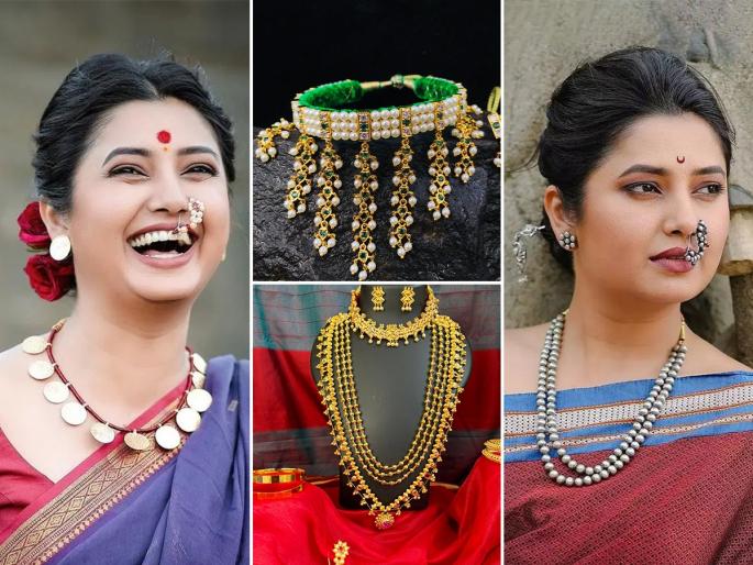1 / 10लग्न सोहळा किंवा सणाच्या दिवशी महत्त्वाचा भाग असतो ते दागिने. महाराष्ट्रात प्रत्येक वेगवेगळ्या भागानुसार दागिन्याचे प्रकार बदलतात. (Traditional Maharashtrian Jewelry for Brides)2 / 10काठाच्या आणि खणाच्या साडीवर कोणते पारंपरिक दागिने घालायला हवे जाणून घेऊया. (Maharashtrian Bridal Look)3 / 10ठुशी हा गळ्यात घातला जाणारा प्रकार आहे. ही बारीक मण्यामध्ये गुंफलेली असते. तसेच मोरणी ठुशी, मोहनमाळ ठुशी असे देखील प्रकार आहेत. काठाची किंवा खणाच्या साडीवर शोभून दिसते. 4 / 10चंदनहारला थोडीशी जाळीसारखी डिजाईन केलेली असते. हा हार दिसायला सुंदर आणि ट्रेंडी असतो. कोणत्याही साडीवर हा परफेक्ट बसतो. 5 / 10अनेक महिलांचा आवडता दागिना शाहीहार. लेयर्समध्ये असलेला हा हार अनेक साड्यांवर शोभून दिसतो. इंडोवेस्टर्न ड्रेसवर देखील याला स्टाईल करता येते. 6 / 10सध्या सगळ्यात फॉर्ममध्ये असलेला दागिन्यांचा प्रकार म्हणजे टेंपल ज्वेलरी. ही ज्वेलरी दिसायला सुंदर असते. यामध्ये लक्ष्मी आणि सरस्वतीचे गुंफन केले जाते. 7 / 10मराठमोळ्या दागिन्यांमध्ये राणीहार देखील अतिशय सुंदर दागिना आहे. राणी हार हा सगळ्या हारांची शान मानला जातो. यामुळे आपला गळा भरलेला दिसतो. 8 / 10चिंचपेटी ही ठुशीसारखीच असते पण हा दागिना मोत्यामध्ये गुंफला जातो. हा पारंपारिक दागिना म्हणून ओळखला जातो. 9 / 10महाराष्ट्रीयन दागिन्यांमधील आणखी एक प्रकार बोरमाळ. यामध्ये लहान बोराच्या आकाराचे मणी जोडलेले असतात म्हणून याला बोरमाळ असे म्हटले जाते. 10 / 10अत्यंत पारंपरिक आणि अनेकांच्या आवडीचा दागिना पुतळी हार. हा हार दोऱ्यामध्ये ओवला जातो. गळ्यालगत आणि मोठा असे यात दोन प्रकार असतात.