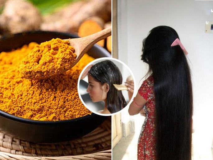 1 / 8भारतीय पदार्थांमध्ये मसाले हे खूपच महत्वाचे मानले जातात. सगळ्यात जास्त स्वंयपाकात हळदीचा वापर केला जातो. याव्यतिरिक्त कोणतंही अन्न अपूर्ण असते. यातील पोषक तत्वांमुळे शरीराला बरेच फायदे मिळतात2 / 8केसांना मजबूत बनवण्यापासून केसांची चांगली वाढ होण्यापर्यंत अनेक गोष्टींसाठी हळद महत्वाची मानली जाते. ज्यामुळे केस मजबूत राहतात. हळदीचा मास्क केसांना लावल्याने बरेच फायदे मिळतात. 3 / 8हळदीची पावडर दही किंवा नारळाच्या तेलाबरोबर तुम्ही पेस्ट बनवू शकता. केस आणि स्काल्पवर लावा २० ते ३० मिनिटं लावलेलं राहू द्या त्यानंतर व्यवस्थित धुवा. 4 / 8हळद पावडर मधात मिसळून मास्क तयार करा. केसांमध्ये चमक येते आणि केस कोमल राहतात. हे कपडे धुवून १५ ते २० मिनिटं तसंच राहू द्या. 5 / 8हळद पावडर नारळाच्या किंवा बदामाच्या तेलात मिसळून हळदीच्या तेलाने स्काल्पची मसाज करा. डिप कंडिशनिंगसाठी रात्रभर सोडून द्या, ज्यामुळे केस चांगले राहतील. 6 / 8हळद पावडर आणि एलोवेरा जेल मिसळून हा हेल्दी हेअर मास्क केसांना लावा. ज्यामुळे स्काल्पची समस्या उद्भवणार नाहीत. 7 / 8यातील एंटी फंगल आणि जीवाणूरोधी गुण डँड्रफ आणि खाज येत असेल तर या समस्यांपासून आराम देतात.8 / 8हळदीच्या वापराने केस तुटणं कमी होतं, हळद पावडर मुख्य स्वरूपात रक्त परिसंचयण सुधारण्यास मदत होते आणि केस चांगले वाढतात