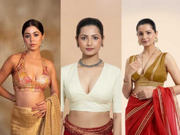 1 / 10आपल्या शरीरयष्टीप्रमाणे कपड्यांची निवड केली तर लूक अधिकच आकर्षक आणि संतुलित दिसतो. साडी किंवा लेहेंग्याचा पूर्ण लूक हा ब्लाऊजच्या फिटिंगवर अवलंबून असतो. विशेषतः ज्यांचा ब्रेस्ट साईज हेव्ही आहे किंवा ज्यांच्या छातीचा आकार फारच रुंद आणि मोठा आहे त्यांनी ब्लाऊजची योग्य नेकलाईन निवडणं खूप महत्त्वाचं ठरतं. चुकीची नेकलाईन निवडल्यास लूक बिघडू शकतो किंवा अनकंफर्टेबल दिसू शकतो, तर योग्य पॅटर्नमुळे शरीरयष्टी अधिक सुबक आणि एलिगंट दिसते(blouse patterns for heavy bust women).2 / 10अनेकदा ज्या महिलांचे ब्रेस्ट हेव्ही असतात, त्यांना नेमका कोणता गळा (Neckline) शिवावा हे समजत नाही. चुकीच्या नेकलाईनमुळे केवळ तुमचा लूकच खराब होत नाही, तर तुम्हाला अवघडल्यासारखेही वाटू शकते. योग्य नेकलाईन निवडल्यास तुमच्या शरीराचा वरचा भाग बॅलन्स होतो आणि तुम्ही अधिक सुडौल दिसता.3 / 10आजकाल साडीसोबत विविध प्रकारचे ब्लाऊज डिझाईन्स ट्रेंडमध्ये आहेत, पण प्रत्येक डिझाईन सर्वांनाच सूट होत नाही. त्यामुळे आपल्या बॉडी टाइपनुसार नेकलाईन निवडणं गरजेचं आहे. योग्य नेकपॅटर्न निवडल्यास केवळ कम्फर्टच मिळत नाही, तर तुमचा संपूर्ण लूकही स्टायलिश आणि कॉन्फिडंट दिसतो. हेव्ही ब्रेस्ट असलेल्या महिलांनी नेमके कोणते नेकलाईन पॅटर्न निवडावेत, जे त्यांना स्टायलिश लूकसोबतच पूर्ण आत्मविश्वासही देतील, पाहूयात... 4 / 10हेवी ब्रेस्ट असलेल्या महिलांसाठी 'व्हर्टिकल स्लिट' (Vertical Slit) नेकलाईन हा एक अतिशय स्टायलिश आणि 'स्लिमिंग इफेक्ट' देणारा पर्याय आहे. जर तुम्हाला खूप डीप गळे घालायला आवडत नसतील, पण तरीही एक मॉडर्न लूक हवा असेल, तर 'व्हर्टिकल स्लिट' हा तुमच्यासाठी बेस्ट पर्याय आहे. यामध्ये गळ्याच्या मध्यभागी एक उभा कट (Slit) असतो. यामध्ये ब्लाऊजचा गळा सामान्यतः गोल किंवा हाय-नेक असतो, पण छातीच्या मध्यभागी एक उभी 'V' किंवा आयताकृती स्लिट दिलेली असते. ही स्लिट तुम्ही तुमच्या आवडीनुसार लहान किंवा मोठी ठेवू शकता. उभी स्लिट (Vertical line) असल्यामुळे छातीचा भाग पसरट न वाटता थोडा अरुंद आणि बॅलन्स वाटतो.5 / 10हेवी ब्रेस्ट असलेल्या महिलांसाठी 'रॅप स्टाईल' (Wrap Style) नेकलाईन हा केवळ एक फॅशन ट्रेंड नसून, शरीर सुडौल दाखवण्यासाठी एक 'मॅजिकल' डिझाईन आहे. रॅप स्टाईल म्हणजे ज्यामध्ये ब्लाऊजचे एक टोक दुसऱ्या टोकावर येऊन बांधले जाते किंवा तसा आभास निर्माण केला जातो. याला 'अंगरखा' स्टाईल असेही म्हणतात. रॅप स्टाईलमुळे मिळणारी तिरकी रेषा छातीचा भाग विभागते, ज्यामुळे हेव्ही ब्रेस्ट असूनही शरीर अधिक स्लिम आणि बॅलन्स दिसते. हे डिझाईन स्तनांच्या आकाराला व्यवस्थित कव्हर करते आणि शरीराला एक सुंदर 'अवरग्लास' शेप देते. कॉटन, सिल्क किंवा अगदी जॉर्जेटच्या साड्यांवरही हा पॅटर्न खूप उठून दिसतो.6 / 