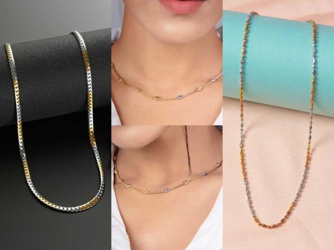 1 / 7फॅशन म्हणजे फक्त कपडेच नाही तर त्याला शोभून दिसाणारी प्रत्येक गोष्ट. त्यातील सर्वात महत्त्वाची गोष्ट म्हणजे गळ्यातील चेन. साडी असो, सलवार सूट, गाऊन किंवा वेस्टर्न आउटफिट. एक सुंदर चेन आपला संपूर्ण लूक बदलू शकते. (Chain designs for women)2 / 7अनेकदा आपण कपडे, मेकअप, हेअरस्टाईल याकडे लक्ष देतो. पण गळ्यातील चेन हे व्यक्तिमत्व अधिक ग्रेसफुल बनवते. साडी किंवा ड्रेस घातल्यावर सोन्याची चेनही राजेशाही ठरु शकते. यंदाच्या लग्नसराईत आपण या ७ प्रकारच्या सोन्याच्या चेन गळ्यात घालू त्याची शोभा वाढवू शकतो. (Saree jewellery ideas)3 / 7आपण हार्ट शेपची चेन गळ्यात घालू शकतो. ज्यामुळे आपला लूक छान दिसेल. 4 / 7सध्या बाजारात मंगळसूत्रासारखी सोन्याची साखळी निवडू शकता. यात काळे मणी देखील असतात. मध्यभागी एक पेंडेंट असते. 5 / 7दोन किंवा तीन लेअरच्या साखळ्या सध्या ट्रेंडमध्ये आहे. यात सोनेरी मणी किंवा रंगीबेरंगी स्टार किंवा हार्ट शेप असते. 6 / 7ज्या महिलांना हलकी पण सोबर डिझाइनची चेन हवे असेल. त्यांनी लहान सोन्याच्या पेंडेटसह चांगला लूक देतात. 7 / 7चेन लिंक्स गोल किंवा चौकोनी आकाराची डिझाइन असलेली चेन. ही डिझाइन महिलांना जास्त आवडते.