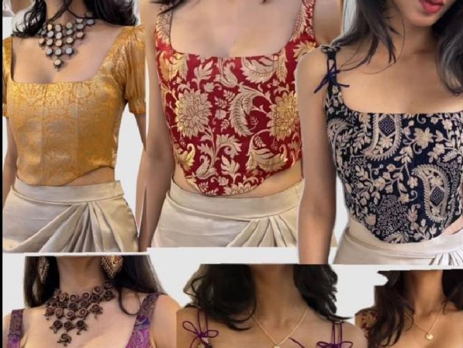 बोनड स्ट्रक्चर कॉर्सेट ब्लाऊजमध्ये पाठीचे हाड ताठ राहते आणि पोटाचा भाग आत दबलेला असतो. हे ब्रायडल वेअरसाठी चांगला पर्याय आहे.