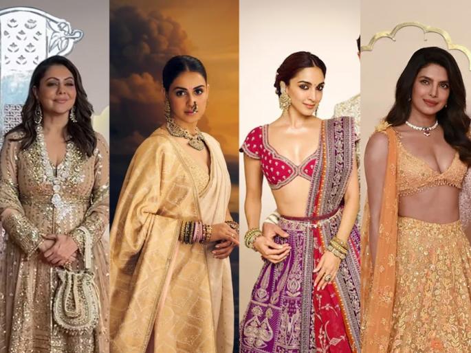 1 / 9अनंत अंबानी आणि राधिका मर्चंट यांच्या लग्नसोहळ्यासाठी अवघे बॉलिवूड तसेच जगभरातील विविध क्षेत्रांतील दिग्गज मंडळी उपस्थित होते. या भव्य लग्नात जवळपास संपूर्ण बॉलिवूड अवतरल्याचं पाहायला मिळालं, जिथे सुंदर अभिनेत्रींचे पोशाख, त्यांची फॅशन पाहून जणू एखादी सौंदर्य स्पर्धाच सुरू असल्याचं दिसून आलं. कारण प्रत्येक अभिनेत्रीचे एकापेक्षा एक सुंदर ड्रेस, साडी परिधान केले होते. या लग्न सोहळ्यात फॅशनचे अनोखे नवनवीन ट्रेंड पाहायला मिळाले.2 / 9देसी गर्ल प्रियांका चोप्रा तिचा नवरा गायक निक जोनससोबत या सोहळ्यात आली आहे. या कार्यक्रमात बेफाम होऊन डान्स करतानाचा प्रियांकाचा व्हिडिओही व्हायरल झाला आहे. यावेळी प्रियांका गोल्डन रंगाचा घागरा घालून एकदम देसी लूकमध्ये लग्नासाठी उपस्थित होती. 3 / 9सुप्रसिद्ध बॉलिवूड अभिनेता राजकुमार राव याची पत्नी पत्रलेखा हिने संपूर्ण सिंदुरी लाल रंगाचा घागरा परिधान केला होता. यावर तिने हिरव्या रंगांचा कुंदनचा नेकलेस घातला होता. 4 / 9कियाराने या लग्न सोहळ्यात व्ही - नेक गुलाबी ब्लाऊज आणि त्यावर जांभळ्या रंगाचा भरजरी लेहेंगा परिधान केला आहे. तिच्या या लेहेंग्यावर चंदेरी धाग्यांनी केलेले बारीक नक्षीकाम फारच उठून दिसत आहे. या लेहेंग्याला साजेसा असा हेव्ही वर्क असणारा दुपट्टा देखील तिने घेतला आहे. 5 / 9अभिनेत्री जिनिलिया देशमुख हिने राधिका, अनंत यांच्या लग्नसोहळ्याला हजेरी लावली.यावेळी जिनिलियाने पारंपरिक मराठमोळा लूक केला होता. नऊवारी साडी आणि त्याला साजेसे दागिने जिनिलियाने परिधान केले होते. नववारी साडीला साजेशी चंद्रकोर लावली होती. तर जिनिलियाने नथही घातली होती. तिचा हा लूक राधिका - अनंतच्या लग्नासह सोशल मीडियावरही चर्चेत आहे.6 / 9अनंत अंबानींच्या लग्नात दीपिका पदुकोण लाल रंगाच्या ड्रेसमध्ये शाही दिसत होती. तिने सुंदर लाल रंगाचा अनारकली ड्रेस घातला होती. तिच्या ड्रेससोबतच ॲक्सेसरीजही तिला रॉयल लुक देत आहेत. दीपिकाचा हा देसी अवतार पाहून तिचे चाहते घायाळ झाले. तौरानीने डिझाइन केलेली सुंदर लाल अनारकली परिधान करून,तिच्या ड्रेसची किंमत सुमारे १,४५,५०० रुपये आहे. दीपीकाने तिच्या पारंपारिक पोशाखसोबत चोकर नेकलेस घातला होता, दीपिकाने तिचा लूक पूर्ण करण्यासाठी सिंदूर आणि केसांचा बन केला होता. 7 / 9या लग्न सोहळ्यात आलिया भट्टच्या लूकची विशेष चर्चा होती, कारण तिने जी साडी नेसली होती, ती चक्क १६० वर्ष जुनी होती. आलिया भट्ट फुशिया गुलाबी सिल्क साडीमध्ये फारच सुंदर दिसत होती. यावेळी तिने प्रसिद्ध डिझायनर मनीष मल्होत्राच्या कलेक्शनमधील फ्युशिया पिंक आशावली सिल्क साडी नेसली होती. या साडीवर जरी वर्क केले होते, या साडीची बॉर्डर ९९ % शुद्ध च