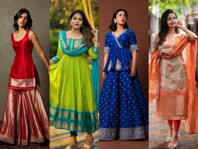 1 / 8दिवाळीसाठी विविध प्रकारचे कपडे घत असालच. एखादा पॅटर्न शिवूनही घेऊ शकता. एखाद्या जुन्या साडीचा ड्रेस नक्की शिवा. हा पॅटर्न दिसतो सुंदरत आणि त्यात साडीची उबही मिळते. 2 / 8साडीचे विविध प्रकारचे ड्रेस शिवता येतात. तेच जुने पॅटर्न शिवण्यापेक्षा काही तरी हटके ट्राय करा. पाहा साडीपासून काय काय शिवता येते. आवडीचा पॅटर्न नक्की शिवून घ्या. 3 / 8जॅकेट असलेला अनारकली फार सुंदर दिसतो. साडीच्या काठाचे जॅकेट आणि इतर साडीचा घेर असलेला ड्रेस शिवायचा. उत्सवांसाठी अगदी मस्त प्रकार. 4 / 8साडीचा वनपिन फार सुंदर दिसतो. तसेच त्यासाठी साधी आणि हलकी साडी वापरा म्हणजे ड्रेस छान दिसतो. 5 / 8साडीचा शॉर्ट वनपिसही शिवता येतो. हा प्रकार तरुण मुलींसाठी अगदी योग्य आहे. ट्रॅडिशनल विथ वेस्टर्न टच असा हा पॅटर्न दिसतोही सुंदर. 6 / 8साडीचा मस्त असा साधा सिंपल ड्रेसही शिवता येतो. तसा हा पॅटर्न फार जुना आहे. मात्र तो दिसतो फारच सुंदर तसेच साडीचा आहे हे लगेच कळून येते. 7 / 8साडीचा लाँग जॅकेट असलेला ड्रेस शिवता येतो. फार सुंदर दिसतो. तसेच एकरंगी असल्यामुळे जरा वेगळा वाटतो. गडद रंगाचा असा पॅटर्न शिवा. 8 / 8साडीचा डेलीवेअर ड्रेस शिवा. जो ऑफीस असो वा कोणताही कार्यक्रम सगळीकडे घालता येतो. त्याखाली मॅचिंग लेगिंज घेतली की सेट तयार होते. ओढणीचीही गरज नाही.
