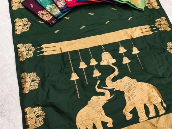 हत्ती हा ऐश्वर्य, समृद्धी आणि शक्तीचे प्रतीक मानला जातो, त्यामुळे पूजेच्या पवित्र प्रसंगी ही साडी तुम्हाला एक वेगळाच लूक मिळवून देते.