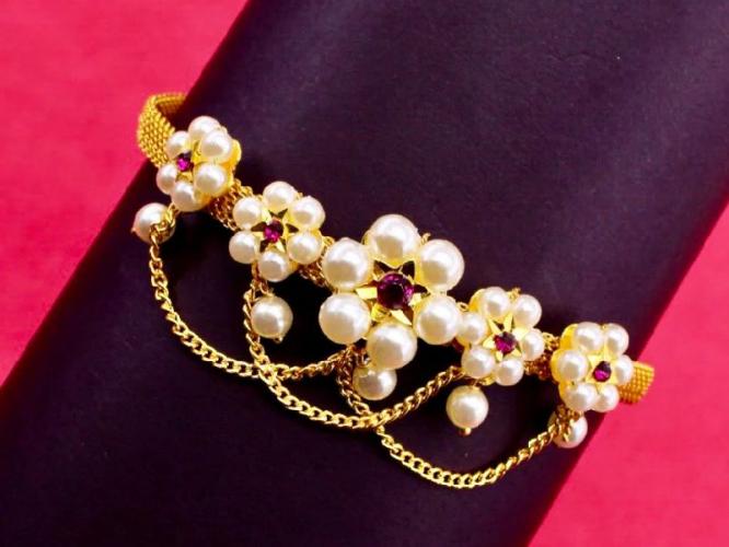 मोत्यांच्या शुभ्र कळ्या आणि गुलाबी खड्यांचे मिश्रण आपल्या पारंपरिक लूकला राजेशाही थाट देईल. या चोकरमध्ये सोनसाखळ्या देखील आहे. ज्यामुळे त्याचा लूक अधिक सुंदर दिसतो. ही कुडी आपल्याला नऊवारी किंवा पैठणीवर छान दिसेल.