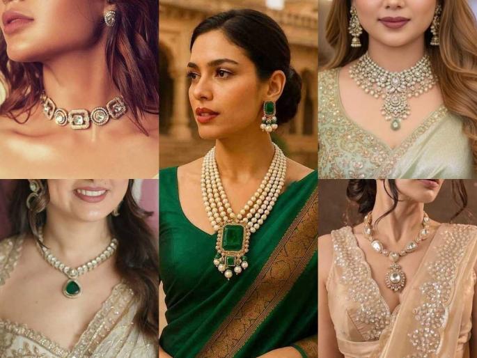 1 / 7लग्न किंवा सणसमारंभात आपल्याला सगळ्यांपेक्षा वेगळा आणि हटके लूक हवा असतो. त्यासाठी आपण विविध साड्या किंवा ड्रेसची निवड करतो. पण अनेकदा आपल्याकडे असणाऱ्या ज्वेलरी साडी-ड्रेसला मॅच होतात खऱ्या पण नेकलाइनमुळे त्याची शोभा निघून जाते. चुकीचे दागिने निवडल्यास आपला संपूर्ण लूक खराब होतो. (jewellery styling tips)2 / 7आपल्यालाही रॉयल आणि ग्रेसफुल दिसायचे असेल तर ब्लाऊजच्या नेकलाईननुसार ज्वेलरी कशी निवडायची. त्यासाठी या ५ फॅशन टिप्स लक्षात ठेवा. (necklace for blouse design)3 / 7गोल गळ्याचे ब्लाऊज अनेकांकडे असते. त्यावर आपण गळ्याशी चिटकलेला चोकर किंवा हेवी नेकलेस घालू शकतो. उजचा गळा खोल असेल, तर मल्टि-लेयर्ड माळा घालून चांगला लूक मिळवू शकता. यावर छोटे कानातले घाला. 4 / 7व्ही आकाराचा गळा आपली मान उंच आणि सडपातळ दाखवतो. या गळ्याच्या आकाराला व्ही शेप नेकलेस किंवा लांब लटकन असलेले पेंडेंट घाला. यामुळे मॉर्डन लूक मिळतो. 5 / 7बोट नेक ब्लाऊजमध्ये गळा बंद असतो. अशावेळी दागिनी घालण्याऐवजी आपण कानातल्यांकडे अधिक लक्ष द्यायला हवे. आपण यावर लांब- जाड झुमके किंवा डँग्लर्स घालू शकतो. 6 / 7कॉलर किंवा हाय-नेक ब्लाऊजमध्ये स्टेटमेंट लूक हवा असेल तर हार, कानातले घालणे टाळा. त्याऐवजी आपण हातामध्ये जाड कडे किंवा अंगठी घालून लूक पूर्ण करु शकतो. गळा प्लेन असेल, तर वरून एखादा लांब राणी हार घाला. 7 / 7चौकोनी गळा आपल्या खांद्यांना वेगळा लूक देतो. यावर नाजूक चोकर किंवा मोत्यांच्या माळा खूप छान दिसतात. दागिन्यांची निवड करताना गळ्याच्या कडांच्या आत राहतील याची काळजी घ्या. ज्यामुळे लूक अधिक 'क्लिन' आणि आकर्षक दिसेल.