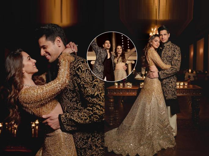 1 / 5बॉलिवूडमधील फेमस कपल कियारा आणि सिद्धार्थ हे नुकतेच विवाहबद्ध झाले आहेत. जैसलमेरमधील मोठ्या राजवाड्यात या जोडप्याचा शाही विवाह सोहळा अतिशय दिमाखात पार पडला. कियाराच्या स्टाइल स्टेटमेण्टसह तिच्या खास घागऱ्याचीही चर्चा आहे(Kiara Advani’s Golden Lehenga By Manish Malhotra Took 4000 Hours To Be Crafted).2 / 5नुकतेच कियाराने आपल्या इंस्टाग्राम अकाऊंटवरुन संगीत सोहोळ्याचे काही फोटोज शेअर केले आहेत. संगीत सोहोळ्यादरम्यान कियाराने सुप्रसिद्ध फॅशन डिझायनर मनिष मल्होत्रा यांनी डिझाईन केलेला लॅव्हिश दिसणारा गोल्डन रंगाचा घागरा परिधान केला आहे. 3 / 5कियाराचा फ्लोअर स्वीपिंग पद्धतीचा लेहेंगा संपूर्णपणे तयार करण्यासाठी एकूण ४००० तासांचा कालावधी लागला आहे. या गोल्डन रंगाच्या चमचमत्या लेहेंग्यावर ९८००० स्वरोवस्की क्रिस्टल (Swarovski Crystals) लावण्यात आले आहेत. या लेहेंग्यावर तिने व्ही नेक पॅटर्न व फुल स्लिव्ह्ज असलेला चमचमता ब्लाऊज परिधान केला आहे. या ब्लाऊजवर शिमरी सिक्वीन वर्क केले आहे. त्याचप्रमाणे टॅसेल्स पद्धतीचे व हेव्ही बीड्स लावून हे ब्लाऊज अधिकच आकर्षक बनवले.4 / 5आपल्या रत्नजडित लेहेंग्याला परफेक्ट मॅचिंग होईल असा सुंदर नेकलेस कियाराने घातला आहे. ज्यामुळे तिचे सौंदर्य अधिकच उठावदार दिसत आहे. कियाराने रुबी पेंडंट असलेला नेकलेस, डायमंड रिंग, हाय हिल्स घालून आपला लूक पूर्ण केला आहे. कियाराने साईड पार्टीशन करून केसांना वेव्ही पद्धतीचा लूक दिला आहे. शिमरी आयशॅडो, विंग आयलायनर, न्यूड लिपस्टिक शेड, गालांवर ब्लश शेड लावून कियाराने आपल्या सौंदर्यात अधिक भर घातली आहे.5 / 5सिद्धार्थ देखील काळ्या रंगाच्या शेरवानीमध्ये अधिकच रोमँटिक दिसत होता. सिद्धार्थने काळ्या रंगाचा पिनस्ट्राइप - प्रिंट बटण असलेला फुल स्लिव्ह्जचा कुर्ता परिधान केला होता. या कुर्त्यावर त्याने बंद गळ्याचे जॅकेट घातले होते. समोरून संपूर्णपणे ओपन असणाऱ्या या जॅकेटवर गोल्डन फुलांची ब्रॉकेड एम्ब्रॉयडरी केलेली होती.
