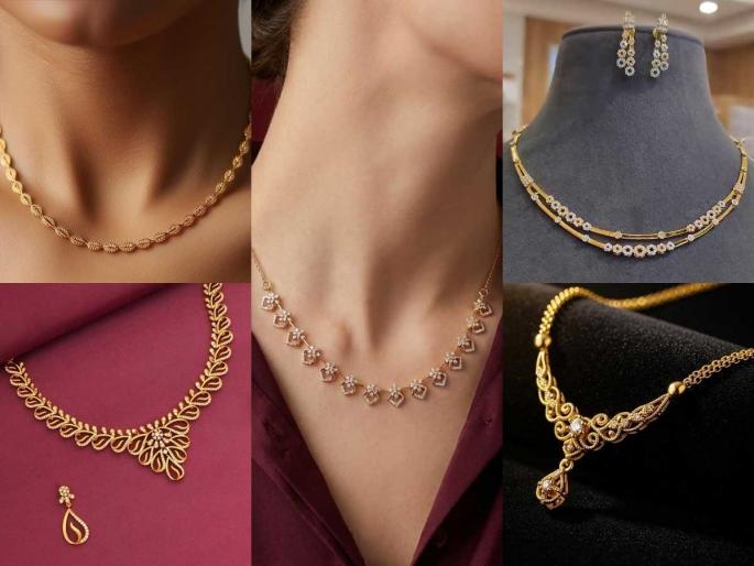 1 / 10भारतीय परंपरेत सोन्याचा दागिना भेट देणे हे केवळ प्रेमाचे प्रतीक नसून ती एक सुरक्षित गुंतवणूकही मानली जाते. मात्र, सोन्याचे सतत वाढणारे दर पाहता, 'बजेटमध्ये' बसणारा आणि तरीही 'रॉयल' दिसणारा दागिना शोधणे हे मोठे आव्हान ठरते. अशा वेळी ३ ते ५ ग्रॅम वजनातील लाईट वेट गोल्ड नेकलेस हा एक अतिशय स्मार्ट आणि लोकप्रिय पर्याय. (Budget friendly gold jewellery for marriage)2 / 10आपणही एखाद्या खास लग्नासाठी किंवा समारंभासाठी बजेटमध्ये बसणारे पण तरीही श्रीमंत लूक देणारे गिफ्ट शोधत असाल, तर हे ८ अप्रतिम नेकलेस डिझाइन्स लेटेस्ट आहेत. पाहूयात त्याचे काही खास कलेक्शन. (Traditional lightweight gold necklace designs)3 / 10लेझर कटिंग दागिन्यामध्ये सोनं कमी लागतं फुलांच्या पाकळ्यांचे नाजूक नक्षीकाम असलेला हा चोकर गळ्याला घट्ट बसतो आणि साडीवरही अत्यंत सुंदर दिसतो. 4 / 10पारंपारिक कोल्हापुरी साजामध्ये २१ पाने असतात, पण भेट देण्यासाठी तुम्ही ७ किंवा ११ पानांचा 'मिनी साज' निवडू शकता. जो आपल्याला अतिशय पारंपरिक आणि श्रीमंत लूक देतो. 5 / 10पेन्डलंट स्टाईल मटार माळ याच्यामध्ये मध्यभागी एक नाजूक पान किंवा शंखाचे डिझाइन असलेला नेकलेस बजेटमध्ये बसणारा चांगला पर्याय आहे.6 / 10देव-देवतांच्या मुर्ती कोरलेले छोटे नेकलेस सध्या लग्नसराईत खूप चालतात. ५ ग्रॅममध्ये तुम्ही लक्ष्मीची प्रतिमा असलेला नाजूक 'कासू माळा' किंवा छोटे टेंपल पेन्डलंट असलेला हार घेऊ शकता.7 / 10फिलिग्री म्हणजे सोन्याच्या बारीक तारांपासून बनवलेले जाळीदार काम. यामुळे दागिना वजनाला अतिशय हलका असतो पण त्याचा आकार मोठा दिसतो. हा वेस्टर्न गाऊनवरही छान दिसतो.8 / 10ठुशी हा प्रकार वजनाला कमी आणि दिसायला भरगच्च असतो. ३ ग्रॅममध्ये सोन्याच्या मण्यांनी विणलेली आणि मध्यभागी एखादा लाल किंवा हिरवा खडा असलेली ठुशी परफेक्ट गिफ्ट आहे. 9 / 10सोन्याच्या छोट्या गोल चकत्या किंवा 'टिकल्या' एकमेकांना जोडून टिकली माळ नेकलेस बनवला जातो. ३ ते ४ ग्रॅममध्ये याची लांबी चांगली मिळते आणि हा दागिना गळ्यात खूप उठून दिसतो.10 / 10नववधूला आधुनिक डिझाइन्स आवडत असतील, तर त्रिकोण किंवा चौकोनी आकारांचे छोटे छोटे सोन्याचे तुकडे जोडून बनवलेला नेकलेस निवडा. हा ऑफिस वेअर किंवा इंडो-वेस्टर्न कपड्यांवरही शोभून दिसतो.