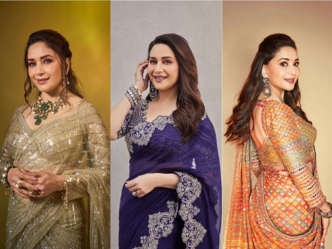 1 / 8९० च्या दशकानंतर आजही अनेकांच्या मनावर राज्य करणारी माधुरी दीक्षित हिट अभिनेत्री आहे. नेहमीच ती तिच्या सौंदयामुळे चर्चेत असते. तिच्या ग्लॅमरसने चाहत्यांना भुरळ पाडण्यांची एकही संधी ती सोडत नाही. तिच्या सुंदर आणि सोबर साड्यांच्या रंगांनी महिलांना तिनं प्रेमातच पाडलं आहे. तिचा साडी लूक खूपच आकर्षक दिसतो. (Madhuri Dixit saree collection)2 / 8जर आपल्यालाही पार्टी, वाढदिवसाचे फंक्शन किंवा लग्नात कोणतेही साडी नेसावी हे कळतं नसेल तर माधुरीच्या साड्यांचे खास कलेक्शन पाहू शकता. या डिसेंट आणि सिंपल लूकने नवराही होईल खूश.(Madhuri Dixit saree inspiration for parties) 3 / 8मखमली मरुन रंगाची साडी नेसणार असाल तर त्यावर गोल्डन रंगाचा स्लीव्हलेस ब्लाऊज घालू शकतो. यावर मोती किंवा स्टोनचा नेकपीस घ्या. साडीला शोभतील असे मोठाले कानातले घातले तर तुमचा लूक उठून दिसेल. (Traditional saree collection of Madhuri Dixit)4 / 8साटन फ्लोरल प्रिंटेड साड्या अनेकांना फार नेसायला फार आवडतात. या साड्यांमध्ये फारसे गरम होत नाही आणि कॅरी करण्यासाठीही सोप्या असतात. आपण जर प्रिंटेड फ्लोरल साडी नेसणार असू तर यावर प्लेन रंगाचा ब्लाऊज छान दिसेल. गळ्यात नेकलेस आणि लांब असे कानातले घातले तर आपण अधिक आकर्षक दिसू शकतो. 5 / 8ग्लोडन टिशू साडी खरेदी करणार असाल तर यावर पूर्ण भरलेला ब्लाऊज शोभून दिसेल. यासोबत तुम्ही एका हातात बांगड्या, गळ्यात चौकर आणि कानात झुमके घालू शकता.उंच टाचाची सॅण्डल घालून आपल्या सौंदर्यात अधिक भर घाला. 6 / 8आपल्याला काही ट्रेण्डी, स्टायलिश घालायचे असेल शिफॉनची साडी नेसू शकतो. यावर आपण पूर्ण भरलेले ब्लाऊज चॉइस घालू शकतो.7 / 8आपण एखाद्या फॅमिली फंक्शनला जाणार असू तर हिरव्या रंगाची डॉट असणारी बॉडरवाली साडी आपल्याला शोभून दिसेल. यावर गोल्डन स्टोनचा नेकलेस घालू शकतो. आपल्या रुपात अधिक भर घालता येईल. 8 / 8हळदीला जाणार असाल तर मस्टर किंवा पिवळ्या रंगाची कांजीपुरम साडी बेस्ट दिसेल. हा साऊथ इंडियन लुक आपल्यावर शोभून दिसेल. यावर आपण गोल़्डन रंगाचे खास ज्वेलरी कलेक्शन तर हातात हिरव्या बांगड्या घालू शकतो.