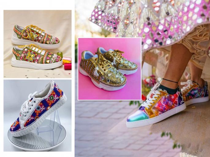 1 / 9नवरात्रीत गरबा खेळायला जाताना सगळेच नटून - थटून जातात. विशेष करून स्त्रिया मोठमोठाले घेरदार घागरे, चोली, कानात झुमके, बिंदिया, पैंजण अशी सगळी जय्यत तयारी करुन जातात. पण संपूर्ण तयारी झाल्यानंतर सगळ्यात शेवटी पायात काय घालायचं असा प्रश्न पडतो. शक्यतो, घागरा - चोली घातल्यावर आपण पायात रंगीबेरंगी वर्क असणारी मोजडी किंवा हिल्स घालतो. खरंतर, पायांत चपला घालूंन गरबा खेळण्यासाठी आपण आपल्याला कम्फर्टेबल वाटेल अशाच चपला घालतो. परंतु बदलत्या काळानुसार, ट्रेंड देखील बदलत असतात. त्यामुळे आता घागरा - चोलीवर चक्क स्नीकर्स शूज देखील घातले जातात. याच स्नीकर्स शूजना हटके लुक्स देण्यासाठी त्यावर वर्क देखील केले जाते. असे वेगवेगळ्या डिझाइन्स आणि पॅटर्न्स असणारे स्नीकर्स शूज सध्या ट्रेंडमध्ये आहेत. हे ट्रेंडी शूज घातल्याने गरबा खेळून पायही दुखत नाही आणि ते घागरा - चोलीवर परफेक्ट मॅचिंग होतात(Navratri special sneakers shoes for ladies).2 / 9१. आपण अशाप्रकारचे रंगीबेरंगी धागा आणि मिरर वर्क असणारे स्नीकर्स शूज घालू शकता. 3 / 9२. जर तुमच्या घागरा - चोलीवर गोल्डन बिड्सचे असे वर्क पॅटर्न असेल तर आपण त्यावर मॅचिंग असे गोल्डन वर्क केलेल्या शूजची निवड करु शकता. 4 / 9३. स्नीकर्स शूज मध्ये अनेक वेगवेगळ्या रंगांचे, डिझाईन्सचे शूज आपल्याला बाजारांत अगदी सहज विकत मिळतील. आपल्या घागरा - चोलीवर असणाऱ्या वर्क प्रमाणे आपण स्नीकर्स शूज खरेदी करु शकतो. 5 / 9४. घागऱ्यावर असणाऱ्या ट्रॅडिशनल गोटा पट्टी वर्कला मॅचिंग असणारे असे स्नीकर्स शूज निवडू शकता. 6 / 9५. आपण अशाप्रकारे अगदी बारीक छोट्या मण्यांचे वर्क असणारे स्नीकर्स शूज घालू शकता. 7 / 9६. या स्नीकर्स शूजमध्ये काही पेस्टल शेड्स देखील विकत मिळतात. आपल्या घागरा - चोली जर पेस्टल शेडचे असे आणि त्यावर मोती वर्कचे डिझाईन असेल तर आपण अशा प्रकारचे मोती वर्क असणारे शूज घालू शकता. 8 / 9७. शूजलेसच्या जागी अशाप्रकारे लटकन लावलेले शूज देखील तुमच्या गरबा लुक्सला हटके टच देतील.9 / 9८. जर आपल्याला जास्त हेव्ही वर्क किंवा डिझाईन्स केलेले शूज नको असतील तर आपण असे शूजच्या फक्त पुढच्या भागावर हलके वर्क केलेले स्नीकर्स शूज घालू शकता.