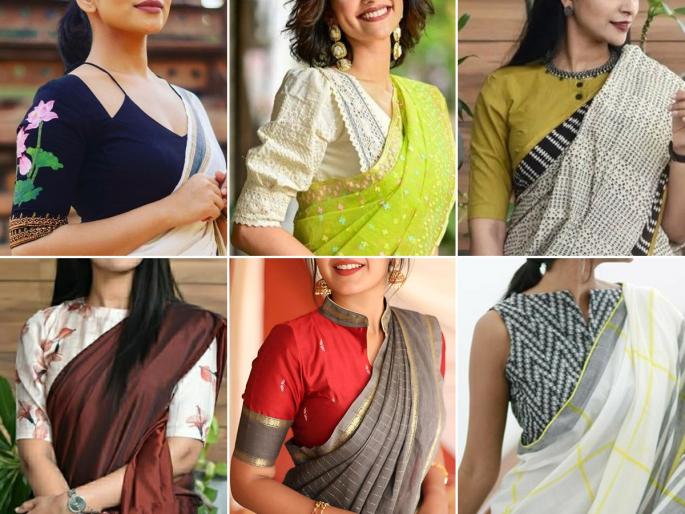1 / 8आपल्यापैकी बऱ्याचजणी थोडं वेगळं म्हणून इतर आऊटफिट्स सोबतच काहीवेळा (Office Wear Saree Blouse Neck Designs) ऑफिसवेअर साडी देखील नेसतात. परंतु अशा ऑफिस वेअर साड्यांवर ब्लाऊज कोणत्या नेकपॅटर्नचा (Blouse Neck Designs for Office Wear) शिवावा असा प्रश्न पडतो. यासाठीच, ऑफिसलुकला साजेसा, कम्फर्टेबल अशा वेगवेगळ्या ब्लाऊजचे नेकपॅटर्न पाहूयात ( Simple Office Wear Blouse Designs Blend of Comfort and Style).2 / 8 तुम्ही अशा पद्धतीचा स्टँड कॉलर नेक पॅटर्न असणारा सुंदर ब्लाऊज शिवू शकता. स्टॅंड कॉलर ब्लाऊजमुळे ऑफिसमध्ये तुमचा लूक प्रोफेशनल आणि क्लासी दिसण्यास मदत होते. 3 / 8स्टॅंड कॉलर सारखाच थोडाफार दिसणारा हा प्रकार हाय नेक पॅटर्न खूप सुंदर दिसेल. हाय नेक पॅटर्नचा हा ब्लाऊज तुम्हाला साडीवर परफेक्ट ऑफिस लूक देईल. 4 / 8झिरो नेक पॅटर्न ब्लाऊजचा गळा हा संपूर्णपणे बंद असतो. एखाद्या कुर्त्याच्या नेक पॅटर्न प्रमाणेच हा गळा दिसतो. तुम्ही ऑफिसवेअर साडीवर अशा प्रकारचा ब्लाऊज शिवून घालू शकता. 5 / 8हॉल्टर नेक पॅटर्नचा ब्लाऊज हा दिसायला टीशर्ट प्रमाणेच असतो. ऑफिसवेअर साडीवर अशा नेक पॅटर्नचा ब्लाऊज अधिकच सुंदर दिसतो. तुम्ही काळ्या रंगाच्या एका हॉल्टर नेक पॅटर्नच्या ब्लाऊजवर वेगवेगळ्या साड्या देखील नेसू शकता. 6 / 8ऑफिसवेअर ब्लाऊजमध्ये बोट नेक पॅटर्नचा ब्लाऊज हा एकदम उत्तम आणि कम्फर्टेबल पर्याय ठरु शकतो. बोट नेक पॅटर्न ब्लाऊजमुळे तुमच्या साडीचा लूक देखील अधिक खुलून दिसेल. 7 / 8तुम्ही अशा पद्धतीचा कॉलर असणारा शर्ट सारखा दिसणाऱ्या पॅटर्नचा ब्लाऊज देखील नक्की ट्राय करू शकता. अशा पॅटर्नच्या ब्लाऊजमुळे तुम्हांला बॉसी, स्टायलिश आणि परफेक्ट ऑफिसलूक मिळेल. 8 / 8ऑफिसमध्ये कॉटनच्या साड्या नेसणार असाल तर अशा पद्धतीचं टर्टल नेक ब्लाऊज शिवा आणि त्याला समोरच्या बाजुने बटन लावा. एकदम फॉर्मल लूक मिळून चारचौघांवर तुमची नक्कीच छाप पडेल.