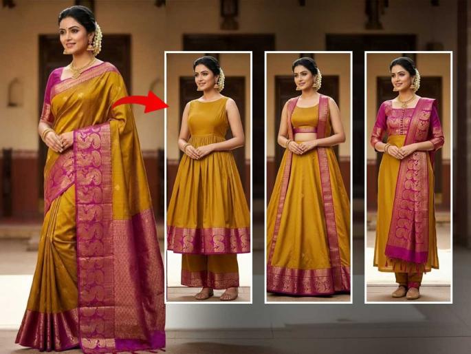 1 / 14अनेकदा कपाटात एखादी सुंदर साडी वर्षानुवर्षे तशीच पडून राहते. कधी फॅशन बदलते, तर कधी एकच साडी बरेचदा (how to reuse old saree for dresses) नेसून ती पुन्हा - पुन्हा नेसण्याची इच्छाच होत नाही. आपल्यापैकी प्रत्येकीच्या कपाटात एखादी अशी साडी नक्कीच असते, जिच्याशी खूप आठवणी जोडलेल्या असतात किंवा जिची डिझाईन खूप सुंदर असते, पण आता ती साडी म्हणून नेसली जात नाही. 2 / 14वर्षानुवर्षे नेसून झालेल्या अशा साड्या नुसत्या कपाटात पडून न ठेवता, आपण त्यापासून (old saree reuse ideas for outfits) अत्यंत स्टायलिश आणि मॉडर्न असे वेगवेगळ्या पॅटर्नचे आऊटफिट्स शिवू शकता. 3 / 14फक्त साडी नेसण्यापुरताच तिचा वापर मर्यादित न ठेवता, त्याच साडीचे अनारकली ड्रेस, पंजाबी सूट, लॉन्ग कुर्ता, वन पीस किंवा अगदी को-ऑर्ड सेटसुद्धा तयार करता येतो. हे साडीचे तयार केलेले वेगवेगळे आऊटफिट्स फक्त युनिकच दिसत नाहीत, तर बजेट - फ्रेंडली आणि फॅशनचा सुंदर पर्यायही ठरतात.4 / 14पारंपारिक काठपदराची साडी असो किंवा हलकी शिफॉन-जॉर्जेट, प्रत्येक साडीतून एक वेगळा आणि हटके ड्रेस शिवता येऊ शकतो. एका साडीपासून तयार करता येणारे वेगवेगळ्या प्रकारचे ड्रेस पॅटर्न, जे तुमच्या वॉर्डरोबला देऊ शकतात एक नवा आणि फ्रेश लूक...कपाटातील तुमच्या जुन्या साडीचा वापर करून तुम्ही कोणते ड्रेसचे ट्रेंडी पॅटर्न शिवू शकता ते पाहा... 5 / 14 सध्या को-ओर्ड सेटचा मोठा ट्रेंड आहे. एका साडीपासून परफेक्ट मॅचिंग टॉप आणि बॉटम तयार करून मॉडर्न को-ऑर्ड सेट शिवता येतो. साडीच्या कापडापासून टॉप आणि पॅन्ट असा मॅचिंग सेट शिवल्यास तो खूपच मॉडर्न दिसतो. को -ओर्ड सेट शिवताना आपण आपल्या आवडीनुसार कुर्ता घेरदार किंवा स्ट्रेट कट फिटिंगचा शिवू शकता यामुळे लूक अधिकच उठावदार दिसेल. साडीच्या कापडापासून तुम्ही 'शॉर्ट कुर्ता आणि पँट' किंवा 'शर्ट आणि प्लाझो' असा सेट शिवू शकता. जर साडी प्रिंटेड असेल (उदा. फ्लोरल किंवा बांधणी प्रिंट), तर हा सेट खूपच स्टायलिश दिसतो. विशेषतः कॉटन, सिल्क किंवा क्रेप साड्या को-ओर्ड सेटसाठी सर्वोत्तम ठरतात. हे सेट तुम्ही ऑफिस वेअर, कॅज्युअल आऊटिंग लूकसाठीही वापरू शकता. 6 / 14काठपदराच्या किंवा सिल्क साडीचा घोळदार अनारकली ड्रेस अत्यंत रॉयल दिसतो. साडीच्या पदराचा वापर तुम्ही ड्रेसच्या किंवा ओढणीच्या काठांवर मस्त बॉर्डर लावून तो अधिक आकर्षक करू शकता. साडीच्या मोठ्या लांबीमुळे अनारकलीला भरपूर घेर मिळतो. साडीचे जड काठ खालच्या बाजूला लावल्यामुळे ड्रेसला एक महागडा लूक येतो. साडीच्या पदराचा उपयोग ड्रेसच्या वरील भागासाठी करा, ज्यामुळे समोरून तो अतिशय डिझायनर वाटेल.7 / 14जर तुम्हाला जास्त हेवी ड्रेस नको असेल आणि काहीतरी हलकं-फुलकं पण ट्रेंडी हवं असेल, तर साडीपासून बनवलेला 'फ्रॉक स्टाईल ड्रेस' एक उत्त