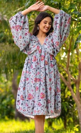 Summer Special - वाढत्या उन्हासाठी खास ब्लूम फ्लोरल पॅटर्न ड्रेस- दिसायला सुंदर आणि हलके कापड