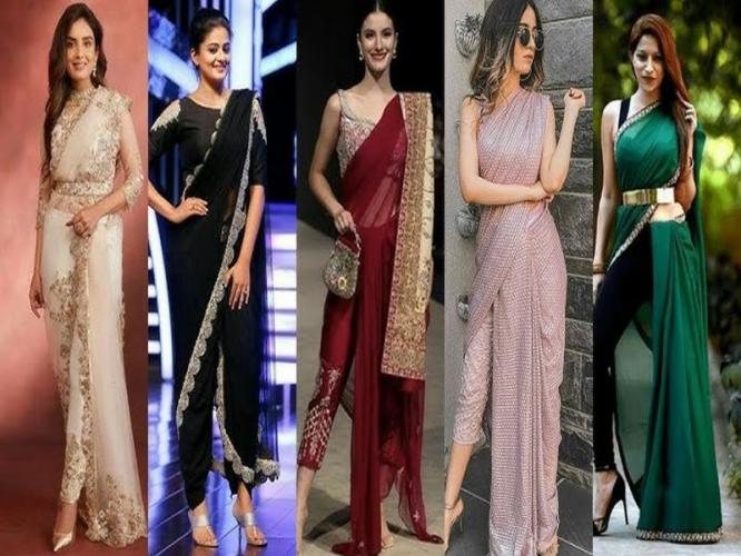 Ready to Wear Pant Style Saree Designs : ready to wear pant style sarees : pant style saree design : pre draped pant style saree : ready to wear saree with pants : साडी नेसायची झंझट विसरा, रेडी टू वेअर पँट स्टाईल साड्यांची बदलती फॅशन - पँट आणि साडीचे परफेक्ट फ्युजन...