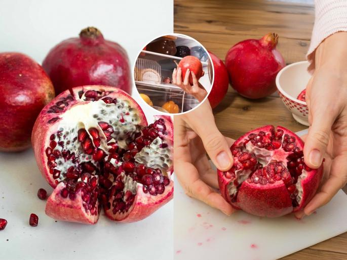 1 / 8बाजारांतून विकत आणलेले लालचुटुक डाळिंब खायला सगळ्यांनाचं आवडतात. परंतु ही डाळिंब बराच काळ तशीच ठेवली तर याची साल सुकून जाते. साल सुकल्याने आतील डाळिंबाचे दाणे देखील हळुहळु सुकून ड्राय होऊ लागतात. यामुळे डाळिंबाच्या दाण्यातील रस कमी होऊन ते फारसे ज्यूसी लागत नाहीत. एकूणच या डाळिंबातील ओलावा निघून जाऊन ते कोरडे, रुक्ष बनते. अशा सुकलेल्या डाळिंबाच्या साली सोलून त्यातून दाणे काढणे फार अवघड काम असते. अशावेळी सुकलेल्या डाळिंबाची साल कशी काढावी तसेच त्यातून दाणे झटपट काढण्यासाठीच्या काही सोप्या ट्रिक्स(Quick & Easy Way to Peel Pomegranate).2 / 8डाळिंबाची साल जर कोरडी, रुक्ष झाली असेल तर आधी डाळिंबाचे दोन तुकडे करुन घ्यावेत. त्यानंतर थंड पाण्यात डाळींब १५ ते २० मिनिटे बुडवून ठेवावे. आता या थंड पाण्याच्या बाऊलमध्येच डाळिंबाचे दाणे काढून घ्यावे. थंड पाण्यामुळे डाळिंबाची साल मऊ पडून लगेच निघते. 3 / 8सुकून कोरडी, रुक्ष झालेली डाळिंबाची साल काढणे कठीण होते. अशावेळी डाळिंब २० ते ३० सेकंदांसाठी मायक्रोव्हेवमध्ये हलकेच गरम करुन घ्यावे. साल गरम झाल्याने ती थोडीशी मऊ होते यामुळे डाळिंबाच्या साली पटकन निघण्यास मदत होते. 4 / 8डाळिंबाची साल फारच सुकली असेल आणि सुरीने देखील कापता येत नसेल तर व्हिनेगर वापरा. यासाठी एका मोठ्या बाऊलमध्ये पाणी घेऊन त्यात १ टेबलस्पून व्हिनेगर मिसळा. या पाण्यात डाळिंब २० ते ३० मिनिटे भिजवत ठेवा. त्यानंतर स्वच्छ पाण्याने पुन्हा एकदा धुवून ते कापून घ्यावे. व्हिनेगरच्या मदतीने डाळिंबाची सालं मऊ होण्यास मदत होते. 5 / 8 जर डाळिंबाची साल खूपच कडक झाली असेल तर ते डाळिंब १५ ते २० मिनिटे फ्रीजरमध्ये ठेवा. डाळिंब फ्रिजरमध्ये ठेवल्याने त्याची साल थोडीशी थंड होऊन मऊ पडून पटकन निघेल. 6 / 8डाळिंब कापून त्याचे दोन भागात विभाजन करा. अर्धे कापलेले डाळिंब उलटे करा, जेणेकरून कापलेला भाग खालच्या दिशेला असेल. आता चमच्याच्या मदतीने डाळिंबावर हलक्या हाताने मारा. या सोप्या ट्रिकमुळे सालीला चिकटलेले डाळिंबाचे दाणे अगदी लगेच निघून सहज खाली बाऊलमध्ये पडतील. 7 / 8साल रुक्ष, कोरडी, कठीण झालेल्या डाळिंबातून दाणे काढण्यासाठी लाटण्याचा वापर करु शकता. डाळिंब कापण्याआधी लाटण्याच्या मदतीने हलकेच दाब देत डाळिंब लाटून घ्यावे. किंवा डाळिंबाला हलकेच लाटणीने बाहेरुन टँपिंग करावे. त्यानंतर डाळिंब कापून घ्यावे. यामुळे डाळिंबाची साल सुकली असली तरीही डाळिंबाचे दाणे अगदी सहज निघतात. 8 / 8 डाळिंबाची साल जर सुकून कोरडी, रुक्ष झाली असेल तर असे डाळिंब कापणे सहज शक्य होत नाही. अशावेळी डाळिंब सहजपणे कापण्यासाठी धारदार सुरीचा वापर करावा.