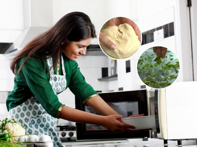 1 / 10घरातल्या मायक्रोवेव्हचा वापर आपण शक्यतो फारच कमी प्रमाणात करतो. काहीवेळा फक्त केक, बिस्कीट, मफिन्स असे पदार्थ तयार करण्यासोबतच अन्नपदार्थ गरम करण्यासाठी वापरतो. एवढाच काय तो या मायक्रोवेव्हचा वापर आपण करतो. याशिवाय मायक्रोवेव्ह असाच किचनमध्ये पडून असतो. परंतु या मायक्रोवेव्हचा वापर करून आपण किचनमधील अनेक काम अगदी चुटकीसरशी करु शकतो. अन्नपदार्थ गरम करण्यासोबतच, आपण मायक्रोवेव्हचा किचनमधील इतर कामांसाठी कसा वापर करु शकतो ते पाहूयात (9 Things You Didn't Know Your Microwave Could Do).2 / 10बटाटे स्वच्छ धुवून त्यांना काटा चमच्याच्या मदतीने छिद्र पाडून ते एका डिशमध्ये ठेवून मायक्रोवेव्ह मध्ये ४ मिनिटांसाठी ठेवावे. यामुळे बटाटे पटकन उकडले जातात. यामुळे बटाटे उकडण्यासाठी आपल्याला कुकरच्या शिट्ट्या मोजण्याची गरज भासणार नाही. 3 / 10रात्री मळून घेतलेली उरलेली कणीक फ्रिजमध्ये ठेवतो. अशी कणीक सकाळी फ्रिजमधून काढल्यास खूपच कडक आणि थंडगार असते. अशावेळी ही कणीक ३० सेकंदांसाठी मायक्रोवेव्ह ओवन मध्ये ठेवावीत. 4 / 10 लिंबामधून जास्तीतजास्त रस काढता यावा, यासाठी लिंबू कापण्याआधी ३० सेकंदांसाठी मायक्रोवेव्ह ओवन मध्ये ठेवावा. त्यानंतर लिंबू कापून त्याचा रस काढल्यास अधिक प्रमाणांत रस मिळतो. 5 / 10लसूण सोलणे हे फारच वेळखाऊ आणि किचकट काम असते. यासाठी लसूण पाकळ्या मोकळ्या करून त्या ३० सेकंदांसाठी मायक्रोवेव्ह ओवन मध्ये ठेवाव्यात. त्यानंतर लसूण सोलावी, यामुळे लसूण पाकळ्यांची सालं झटपट निघते. 6 / 10मेथी, पुदिना, गुलाबाच्या पाकळ्या सुकवून ड्राय करण्यासाठी मायक्रोवेव्हचा वापर करु शकतो. यासाठी मेथी, पुदिन्याची पाने एका डिशमध्ये ठेवून २ मिनिटांसाठी मायक्रोवेव्ह करून घ्यावीत. मेथीच्या पानांपासून आपण झटपट घरच्या घरीच कसुरी मेथी तयार करु शकतो. 7 / 10 उरलेला शिळा ब्रेड तसाच ठेवून तो कोरडा, रुक्ष होतो. असा शिळा ब्रेड खाण्याआधी त्यावर किंचित पाणी शिंपडून १५ सेकंद मायक्रोवेव्हमध्ये ठेवावा. यामुळे ब्रेड आधीसारखा मऊ, लुसलुशीत होऊन खाण्यासाठी फ्रेज होतो. 8 / 10मधल्या वेळच्या लहान भुकेसाठी आपण झटपट तयार होणारे नो ऑयली बेक्ड चिप्स पटकन तयार करु शकता. यासाठी एका डिशला चमचाभर तेलाने ग्रीस करुन घ्यावे. त्यावर बीटरुट, बटाट्याच्या गोल चकत्या कापून त्यावर थोडेसे मीठ भुरभुरवून ४ मिनिटांसाठी मायक्रोवेव्हमध्ये ठेवून द्यावे. मस्त क्रिस्पी, कुरकुरीत वेफर्स खाण्यासाठी तयार आहेत. 9 / 10 लहान बाळाची दुधाची बाटली, बाऊल, चमचा स्टरलाईझ करण्यासाठी आपण मायक्रोवेव्हचा वापर करु शकतो.यासाठी एका मोठ्या बाऊलमध्ये पाणी घेऊन त्यात दुधाची बाटली, चमचे, बाऊल सगळे व्यवस्थित बुडवून ४ मिनिटांसाठी मायक्रोवेव्हमध्ये ठेवून द्यावे. 10 / 10ड्रायफ्रुट