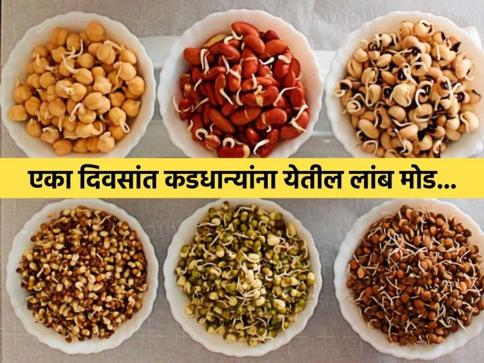 1 / 9कडधान्यांना मोड आणून खाणे आरोग्यासाठी अत्यंत फायदेशीर असते. मोड आलेल्या कडधान्यांमध्ये प्रोटीन, फायबर, व्हिटॅमिन्स आणि मिनरल्स फार मोठ्या प्रमाण असल्यामुळे शरीरासाठी अत्यंत लाभदायक ठरतात. पण अनेकदा गृहिणींची ही तक्रार असते की, मोड लवकर (how to get long sprouts in one day) येत नाहीत किंवा ते चिकट होतात. कधी कधी तर दोन-दोन दिवस वाट पाहूनही कडधान्ये हवी तशी फुलत नाहीत. योग्य पद्धत आणि काही खास किचन टिप्स वापरल्या तर फक्त एका दिवसातच कडधान्यांना लांब, ताजे आणि कुरकुरीत मोड आणता येतात. कडधान्यांना पटकन आणि लांब मोड येण्यासाठी नेमक्या कोणत्या सोप्या टिप्स आहेत ते पाहूयात(quick sprouting method for pulses).2 / 9 कडधान्ये भिजवण्यासाठी नेहमी कोमट पाण्याचा वापर करावा, यामुळे ती लवकर फुगतात. साधारण ६ ते ८ तास भिजवल्यानंतर सकाळी त्यातील पूर्ण पाणी निथळून घ्यावे.3 / 9 कडधान्यांना मोड आणण्यासाठी कॅसरोल पद्धत ही सर्वात सोपी आणि उपयोगी पद्धत आहे. भिजवलेली कडधान्ये थेट कॅसरोलमध्ये ठेवून त्याचे झाकण घट्ट लावा. आतील उष्णतेमुळे अवघ्या ५ ते ६ तासांत कडधान्यांना लांब मोड येतात.4 / 9 पाणी निथळलेली कडधान्ये एका सुती कापडात घट्ट बांधून ठेवा. ही पुरचुंडी एखाद्या उबदार जागी (जसे की बंद ओव्हन किंवा किचन कॅबिनेट) ठेवा, जिथे हवेचा थेट संपर्क येणार नाही. या सोप्या ट्रिकमुळे कडधान्यांना लांब व कुरकुरीत मोड येतात. कडधान्ये ज्या भांड्यात किंवा कापडात बांधाल, तिथे त्यांना फुगायला पुरेशी जागा द्या, कारण मोड आल्यावर कडधान्याचा आकार दुप्पट होतो.5 / 9 लांब मोड येण्यासाठी कडधान्यांमध्ये थोडा ओलावा असणे गरजेचे असते. यासाठी कापड वारंवार उघडून पाहण्यापेक्षा, त्यावर अधूनमधून पाण्याचा हलका हबका मारावा.6 / 9कडधान्ये भिजवण्यापूर्वी ती ३ ते ४ वेळा पाण्याने स्वच्छ धुवावीत. तसेच मोड येण्यासाठी बांधताना त्यात जास्त पाणी राहणार नाही याची काळजी घेतल्यास कडधान्ये चिकट होत नाहीत.7 / 9 मटकी, मूग, चणा यांसारख्या कडधान्यांना भिजण्यासाठी पुरेसा वेळ मिळाला पाहिजे. अर्धवट भिजल्यास कडधान्यांना मोड कमी येतात.8 / 9 कडधान्यांना मोड आणण्यासाठी पूर्ण बंद डब्यात ठेवू नका. थोडी खेळती हवा मिळाली तर मोड लांब आणि ताजे येतात. भांड्यात तुम्ही मोड आणायला ठेवणार आहात, ते भांडे पूर्णपणे कोरडे आणि स्वच्छ असावे, जेणेकरून कडधान्यांना कुबट वास येणार नाही.9 / 9 कडधान्ये भिजवताना पाण्यात चिमूटभर साखर घातल्यास मोड वेगाने वाढण्यास मदत होते.