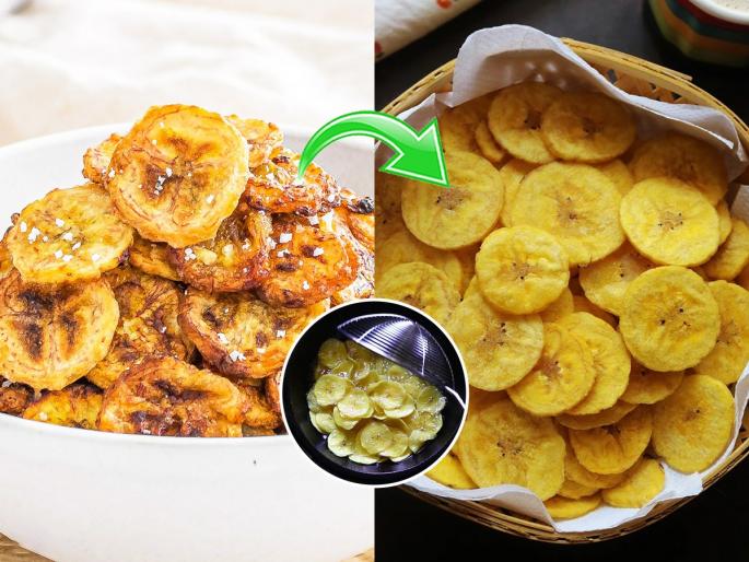1 / 6बाजारात मिळणाऱ्या वेफर्समध्ये जास्त प्रमाणात तेल, मीठ आणि प्रिझर्व्हेटिव्ह असतात. ज्यामुळे आरोग्यावर परिणाम होतो. पण घरच्या घरी केले जाणारे केळीचे वेफर्स मात्र चविष्ट, ताजे आणि हवे तसे मसाले घालून तयार करता येतात.(banana chips recipe)2 / 6अनेकदा घरी केळीचे वेफर्स करताना ते कुरकुरीत होत नाही. पटकन मऊ होतात किंवा जास्त प्रमाणात तेल शोषून घेतले जाते. ज्यामुळे चविष्ट होत नाही. पण काही सोप्या टिप्स वापरल्या तर वेफर्स अगदी कुरकुरीत होतील. (crispy banana chips)3 / 6सगळ्यात आधी केळी ही कच्ची असायला हवी. पिकलेल्या केळीचे वेफर्स होत नाहीत. त्यानंतर केळी सोलून त्याचे पातळ गोल काप करा. चिप्स कटर वापरल्यावर एकसारखे काप होतील. 4 / 6कापलेली केळी हळद आणि मीठ घातलेल्या पाण्यात ५ ते १० मिनिटे भिजवून ठेवा. यामुळे रंग आणि चव वाढते. नंतर हे कोरड्या कापडावर पसरवून त्यातील अतिरिक्त ओलेपणा काढून घ्या. 5 / 6तळताना तेल मध्यम आचेवर गरम करा. केळीचे काप एकेक करुन तेलात सोडा, सोनेरी रंग होईपर्यंत तळा. तळलेले वेफर्स टिशू पेपरवर ठेवून अतिरिक्त तेल शोषून घेईल. 6 / 6वेफर्स पूर्ण थंड झाल्यावर हवाबंद डब्यात ठेवा. यामुळे किमान एक आठवडा तरी फ्रेश राहतील.