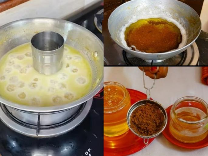 1 / 8जमा केलेल्या सायीपासून तूप काढण्यासाठी शक्यतो थोड्या मोठ्या तोंडाचे आणि जाड तळाचे स्टिलचे पातेले घ्या. ज्यामध्ये साय सहज मावेल.जमा केलेली साय थोडी बाहेर काढून ठेवा. जेणेकरून ती खूपच घट्ट राहणार नाही. (How To Make Ghee At Home)2 / 8पातेल्यातील सायीवर स्टीलचा ग्लास उपडा ठेवा. त्यानंतर तो ग्लास हातानं गोल-गोल फिरवत सायीवर दाबानं घासा. (How To Make Ghee At Home Without Using Mixer Or Blender)3 / 8 सततच्या घर्षणामुळे सायीचे गोळे तयार होऊ लागतात आणि त्यातील पाणी वेगळे होऊन लोणी वर येऊ लागते.4 / 8हे करताना थोडा वेळ लागतो पण मिक्सरचा वापर न करता हातानं केल्यामुळे लोण्याला एक वेगळीच चव येते आणि त्याचा दर्जाही उत्तम राहतो.5 / 8एकदा सायीतून पांढरेशुभ्र लोणी बाहेर आले की हातानं गोळा करून घ्या आणि नेहमीप्रमाणे मंद आचेवर गरमकरून तूप तयार करून घ्या. ही पद्धत थोडी कष्ट करणारी असेल तरी लोणी एकदम मऊ आणि दाणेदार निघते.6 / 8ही पद्धत वापरताना शक्यतो धारदार कडा नसलेला आणि जड तळाचा स्टीलचा ग्लास वापरा. यामुळे हाताला इजा होत नाही आणि सायीवर पुरेसा दाब निर्माण होतो.7 / 8साय घासताना ती खूपच जास्त घट्ट वाटली तर त्यात अगदी थोडे थंड पाणी किंवा कोमट पाणी घाला. यामुळे लोणी लवकर सुट्टे होण्यास मदत होते.8 / 8 ग्लास फिरवताना तो फक्त गोल न फिरवता ८ च्या आकारात किंवा घड्याळाच्या काट्याच्या दिशेनं एकाच लयीत घासा. यामुळे सायीतील फॅट्स लवकर एकत्र येतात. मिक्सरमध्ये साय फिरवल्यास कधीकधी मिक्सरच्या उष्णतेनं लोण्याला उग्र वास येतो. मात्र ग्लासानं साय घासल्यामुळे ती थंड राहते आणि लोण्याचा सुगंध नैसर्गिकरित्या टिकून राहतो.