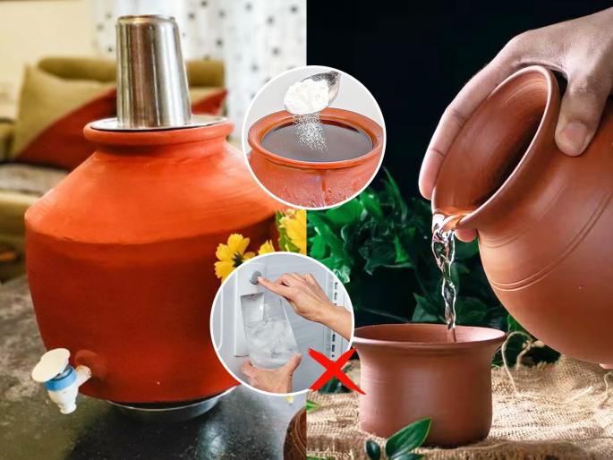 1 / 11उन्हाळ्याच्या दिवसांत नेहमीच थंड पाणी पिण्याची इच्छा होते. तब्येतीच्या समस्यांमुळे(Kitchen Tips Tricks To Keep Water Cool In Earthen Pot Matka This Summer) आपण शक्यतो फ्रिजचं पाणी पिणे टाळतो, कारण यामुळे अनेक प्रकारे आरोग्याचे नुकसान होऊ शकते. अशा परिस्थितीत, माठातलं पाणी पिणे हा एक उत्तम पर्याय ठरु शकतो. असे असले तरीही माठातलं पाणी गरम असेल तर ते सुद्धा पिण्याची इच्छा होत नाही. माठातलं पाणी फ्रिजच्या पाण्यासारखं ठंड करण्यासाठी तुम्ही काही सोप्या ट्रिक्स वापरू शकता, या ट्रिक्स नेमक्या कोणत्या ते पाहा. 2 / 11१. आपण विकत आणलेला मातीचा माठ हा खरंच मातीचा (Tips & Tricks How To Do Chilled Water In Pitcher Like Fridge) आहे की नाही हे तपासून पाहण्यासाठी माठ चमच्याने वाजवून पाहावा. 3 / 11२. आता आपण ज्या स्टँडवर मातीचा माठ ठेवतो त्या स्टँडवर मातीचा माठ ठेवण्याआधी मातीची छोटीशी कुंडी ठेवावी. ही कुंडी मातीने भरलेली असावी. मातीने भरलेली कुंडी ठेवल्यानंतर माती भिजून ओली होईल इतके पाणी त्यात घालावे. त्यानंतर या कुंडीवर आपला पाण्याने भरलेला मातीचा माठ अलगद ठेवून द्यावा. भिजलेल्या मातीच्या ओलाव्याने माठाचा पृष्ठभाग कायम थंडगार राहण्यास मदत होते, यामुळे आतील पाणी थंड राहते. 4 / 11३. एक कॉटनचा टॉवेल किंवा सुती कापड घेऊन ते संपूर्णपणे पाण्याने भिजवून घ्यावे. हे भिजवून घेतलेले कापड माठाच्या बाहेरील बाजूने माठाला संपूर्णपणे गुंडाळून घ्यावे. यामुळे माठातील पाणी जास्त काळासाठी थंडगार राहते. 5 / 11४. माठ खिडकीजवळ हवा लागेल असा ठेवा पण त्या जागी ऊन लागणार नाही याची काळजी घ्यावी. तशी जागा नसल्यास माठ काळोखाच्या ठिकाणी किंवा जेथे ऊन आणि गॅसची झळ लागणार नाही अशा ठिकाणी ठेवा. यामुळे मठांतील पाणी हवेमुळे थंड राहील. 6 / 11५. माठ दररोज स्वच्छ करा. त्याचबरोबर त्यात रोज नवीन स्वच्छ पिण्याचे पाणी भरा, जेणेकरून पाणी गार राहण्यास मदत होईल.7 / 11६. मातीच्या भांड्याला खूप लहान छिद्रे असतात. ज्यामुळे हवेचे परिसंचरण व्यवस्थित होऊन पाणी थंड होते. पण भांडे जुने झाल्यावर त्यात घाण साचून ती छिद्रांत अडकते. त्यामुळे पाणी थंड होऊ शकत नाही. अशा स्थितीत जर तुम्ही मातीच भांड दररोज स्वच्छ करुन नीट घासले तर पाणी थंड होण्यास मदत होईल. 8 / 11७. माठ वापरण्यापूर्वी पाण्याने स्वच्छ धुवून घ्या. नंतर एका स्पंजवर एक चमचा मीठ घ्या. मिठाने माठ स्वच्छ घासून घ्यावा. नंतर पाण्याने माठ स्वच्छ धुवून घ्या. यामुळे माठातील बंद झालेली छिद्र उघडून आतील पाणी दीर्घकाळ थंड राहण्यास मदत होईल. 9 / 11८. माठ राहील इतक्या मोठ्या टबमध्ये माठ अर्धा पाण्यांत बुडेल इतके पाणी भरुन घ्यावे. त्यानंतर त्यात माठ ठेवून द्यावा. मग या माठात पाणी भरून ठेवावे. हा माठ ३ ते ४ तास या टबमध्येच बुडवून ठेवावा. जेणेकरून, पाणी थंड राहील. 10 / 11९. माठातील प