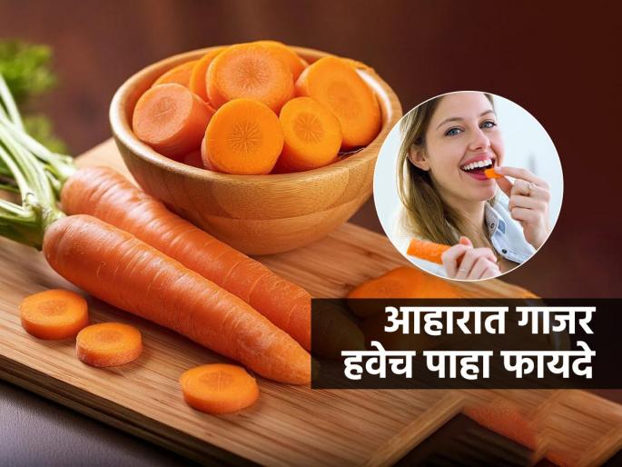 1 / 9गाजर आपण कोशिंबीरमध्ये वापरतो तसेच गाजराचा मस्त चविष्ट गाजर हलवाही करतो. गाजराची खीरही छान लागतो. पण तुम्ही नुसतं गाजर खाता का?2 / 9गाजराचा आहारात समावेश असलाच पाहिजे. पौष्टिक पदार्थ चविष्टही असतात तसाच एक पदार्थ म्हणजे गाजर. गाजरामध्ये अनेक गुणधर्म असतात. 3 / 9गाजर चवीलाही छान गोड असते. त्यामुळे रोज एक खायला काहीच हरकत नाही. पाहा गाजराचे किती फायदे आहेत.4 / 9चष्मा वापरणार्या लोकांना कायम सांगितले जाते की गाजर खा. कारण गाजरातून जीवनसत्व 'ए' शरीराला मिळते. गाजर खाल्ल्याने दृष्टी चांगली राहते. रातांधळेपणा असणार्यांनीही गाजर खावे.5 / 9 गाजरामध्ये बिटा कॅरेटिन असते. हे कॅरेटिन शरीरातील रोग प्रतिकारक शक्ती वाढवण्यासाठी अत्यंत उपयुक्त ठरते. कॅन्सरसारखे विषाणूही कमी करते.6 / 9शरीराला गरजेची असलेली ऊब गाजरातून मिळते. एक गाजर जरी खाल्ले तरी ते पोटभरीचे होते. गाजराचा ज्यूस करा आणि तो प्या. तसेच नुसत्या गाजराची कोशिंबीरही छान लागते. 7 / 9गाजरामध्ये अँण्टी ऑक्सिडंट्स असतात. भरपूर प्रमाणात खनिजे असतात. त्यामुळे त्वचेसाठी गाजर फार उपयुक्त ठरते. त्वचेवरील डाग कमी होतात. 8 / 9महिलांनी तर गाजर खायलाच हवे. कारण गाजर हाडांचे आयुष्य वाढवते. तसेच हाडांना मजबुती देते. कुरकुरणाऱ्या हाडांनाही ताकद मिळते.9 / 9वजन कमी करायचे असेल तर मग गाजर खाच. गाजरामुळे वजन कमी होण्यासाठी मदत होते. मध्येच काही खायची हुक्की आली की गाजर, बीट, काकडी असे पदार्थ खायचे.
