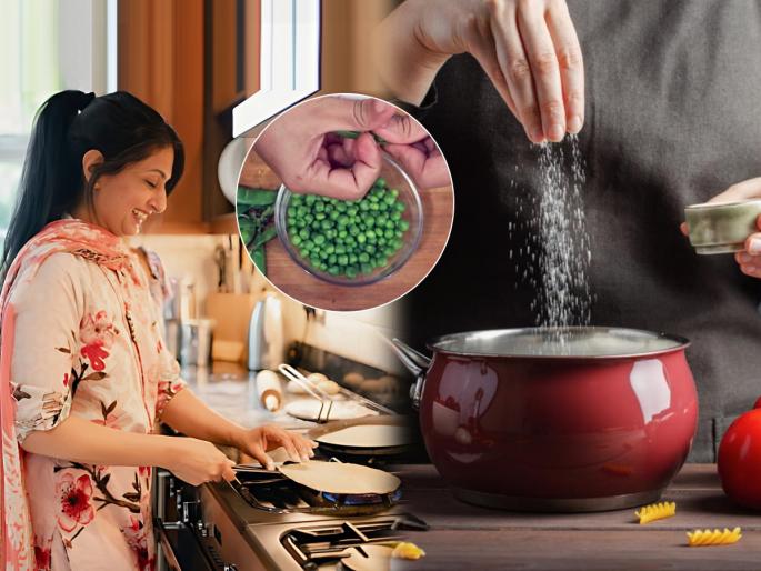 1 / 9ऑफिसचं काम सांभाळून स्वयंपाक करणं म्हणजे खूपच अवघड काम. (Cooking Tips & Tricks) काही कुकींग टिप्स तुमच्या कामाचा वेळ वाचवू शकतात. इतकंच नाही तर जेवण झटपट स्वादीष्ट बनवण्यातही याचा उपयोग होऊ शकतो. (Kitchen Hacks)2 / 9१) बटाटे उकळताना त्यात चिमूटभर मीठ टाका, त्यामुळे सहज सोलण्यास मदत होते.3 / 9२) कोमट मिठाचे पाणी पनीर मऊ करते आणि ग्रेव्ही सहज शोषून घेते. पनीर शिजवण्यासाठी या पाण्याचा वापर करा.4 / 9३) पदार्थ रुचकर आणि चवदार बनवण्यासाठी घटक एका विशिष्ट क्रमाने शिजवा. उदाहरणार्थ कांदे आधी, नंतर लसूण नंतर आले आणि टोमॅटो घालावे.5 / 9४) चमकदार हिरवा रंग टिकवून ठेवण्यासाठी मटार उकळण्यापूर्वी त्यात साखर घाला.6 / 9५) डाळ शिजवताना थोडं तेल घाला. जेणेकरून डाळ मऊ शिजेल आणि चिकट होणार नाही7 / 9६) तळाशी जड असलेला पॅन निवडा. जड तळाशी पॅन अन्न जळण्यापासून रोखण्यास मदत करते.8 / 9७) पुरी कुरकुरीत बनवण्यासाठी पीठ मळताना त्यात २ ते ३ चमचे रवा घाला.9 / 9८) पास्ता किंवा नुडल्स मोकळे करण्यासाठी गरम पाण्यातून काढल्यानंतर थंड पाण्यात घाला.