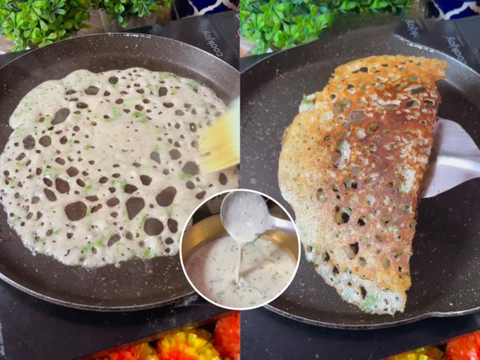 1 / 6नवरात्रीमध्ये नऊ दिवस जे उपवास करतात त्यांना साबुदाणा खिचडी, भगर असे उपवासाचे तेच ते पदार्थ खाऊन कंटाळा येतो.(special dosa recipe for Navratri fast)2 / 6म्हणूनच यापेक्षा काहीतरी वेगळा पदार्थ कसा करायचा ते पाहूया.. हा पदार्थ म्हणजे उपवासाचा कुरकुरीत खमंग डोसा.(how to make dosa for fast?)3 / 6हा डोसा करण्यासाठी १ वाटी साबुदाणा स्वच्छ धुवून ३ ते ४ तास भिजत घाला.4 / 6यानंतर भिजलेला साबुदाणा, भगर, हिरव्या मिरच्या, जिरे मिक्सरमध्ये घालून थोडं पाणी टाकून वाटून घ्या.5 / 6आता या पिठामध्ये थोडं दही घाला आणि ते पीठ ५ ते १० मिनिटे भिजू द्या. हे पीठ नेहमीच्या तांदळाच्या डोशापेक्षा थोडं पातळ असावं.6 / 6त्यानंतर नेहमीप्रमाणे गॅसवर तवा गरम करायला ठेवून डोसे करा.