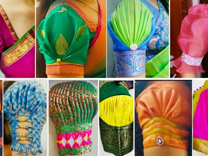 हातांच्या डिझाईन्समध्ये पफ स्लिव्हज, कोपरापर्यंतचे हात किंवा स्लिव्हजलेस असे विविध पर्याय उपलब्ध आहेत. (Unique Blouse Sleeves Designs)