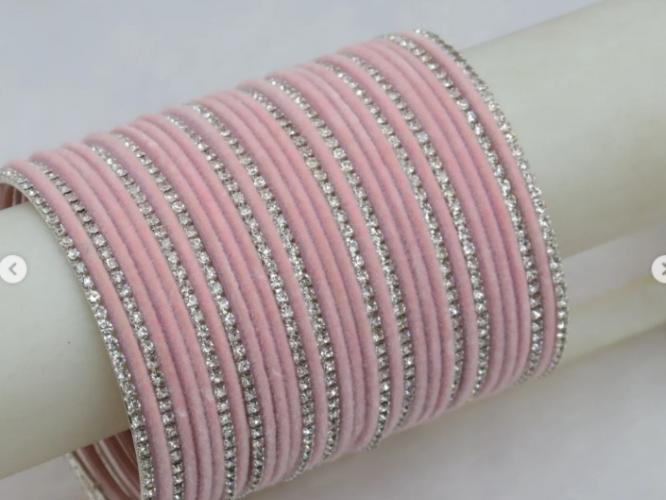 तुम्ही तुमच्या साडीच्या किंवा ड्रेसच्या रंगांनुसार वेलवेटच्या बांगड्या निवडून त्यामध्ये चंदेरी खड्यांच्या बांगड्यांची हवी तशी मांडणी करु शकता.