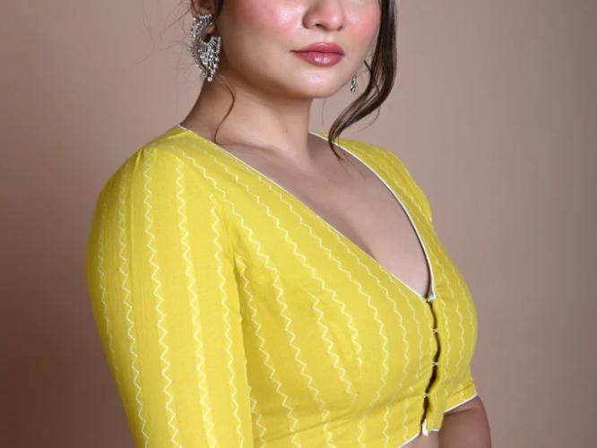 ब्लाऊजसाठी गडद रंगाच्या कापडाचा वापर करा. गडद रंगामुळे शरीराचा तो भाग कमी उठावदार दिसतो.