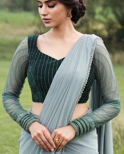 सध्या नेट, ऑर्गेन्झा किंवा शिफॉन अशा ट्रान्सपरंट कापडाचे फुल स्लिव्हज ब्लाऊज खूपच ट्रेंडी आहेत.