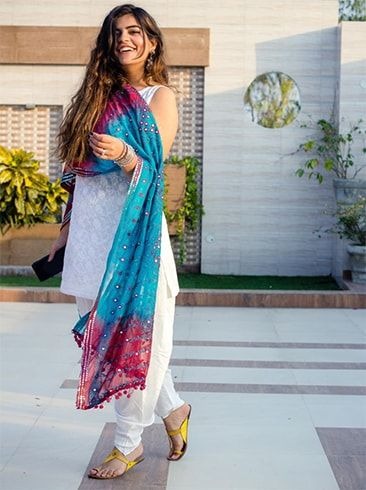 पांढऱ्या रंगाच्या कुर्ती किंवा अनारकली ड्रेसवर बांधणी, लेहरिया किंवा फुलांच्या डिझाईन्सचा दुपट्टा उठून दिसतो. (8 Dress Idea For Women For This Holi)