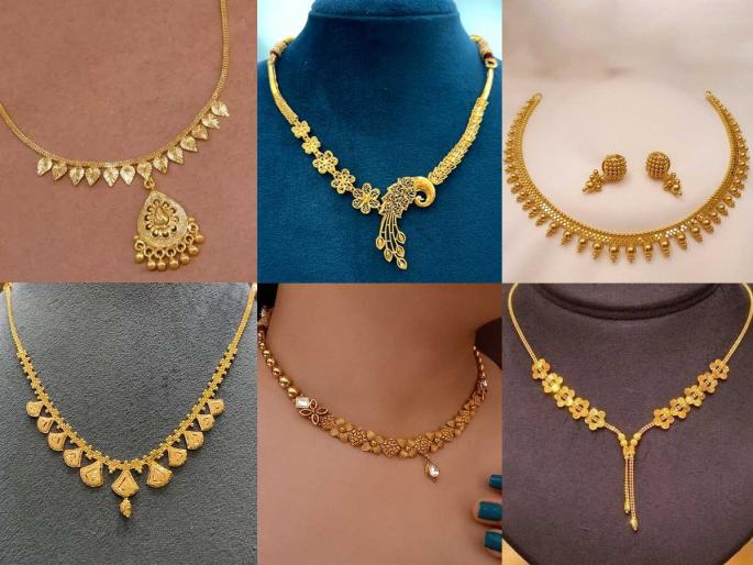 1 / 8लग्नसराईचे दिवस आता सुरू होत आहेत. त्यानिमित्ताने सोन्याच्या दागिन्यांची खरेदी सुरू असेल तर नेकलेसचे काही सुंदर पर्याय पाहून घ्या.2 / 8सध्या सोन्याच्या किमती प्रचंड वाढलेल्या असल्याने लाईटवेट दागिने घेण्याकडे ग्राहकांचा कल आहे. त्यामुळेच असे काही कमी वजनाचे सोन्याचे नेकलेस तुम्ही घेऊ शकता.3 / 8अशा लाईटवेट नेकलेसचे कित्येक डिझाईन्स सध्या सोनाराच्या दुकानात पाहायला मिळत आहेत. अगदी ४ ते ५ ग्रॅम वजनापासून ते सुरू होतात.4 / 8हल्ली तरुण मुलींना जाड, हेवी दागिन्यांपेक्षा असे लाईटवेट, नाजुक डिझाईन्सचे दागिनेच खूप आवडतात.5 / 8हे एक नेकलेस डिझाईन पाहा. साडीवर जसे ते शोभून दिसेल तसेच ते वेस्टर्न कपड्यांवरही छान वाटेल.6 / 8गळ्याला चिटकून असं नाजूक नेकलेस आणि त्याखाली मोठं मंगळसूत्र एवढंच घातलं तरी पुरेसं दिसेल आणि छान लूक येईल.7 / 8हे नेकलेस दिसायला खूप हेवी आणि भरगच्च वाटत असलं तरी अगदी १ तोळ्यापेक्षा कमी सोन्यामध्ये ते तयार होऊ शकतं. 8 / 8कमी वजनात येणाऱ्या ठसठशीत नेकलेसचा हा आणखी एक सुंदर प्रकार पाहा..