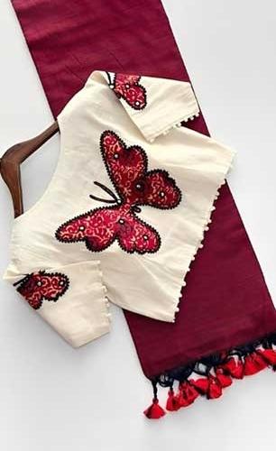 खादीचा पोत आणि कॉलर ब्लाऊजची शिस्तबद्धता तुम्हाला एक वेगळीच ओळख मिळवून देतो.