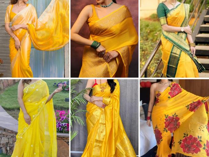 हळदीसाठी स्पेशल गोल्डन पिवळ्या साड्या; १२ नवीन सुंदर साड्या, हळदीत सगळ्यात भारी दिसाल