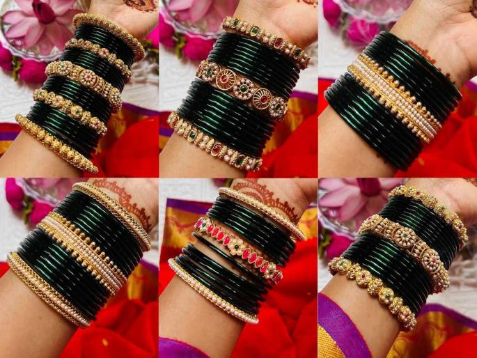 1 / 11कितीही वेगवेगळ्या डिझाईन्सच्या बांगड्या घातल्या तरी हिरवा चुडा घालण्याचा आनंद काही वेगळाच असतो. लग्नसराईत हिरव्या चुड्याला बरीच मागणी असते. (Green Chuda Set (Hirva Chuda)2 / 11हिरव्या रंगाच्या बांगड्यांच्या आजूबाजूला गोल्डन कड्यांचे से्टस चुड्याला नवीन लूक देतात. (Green Bangles Set)3 / 11साध्या हिरव्या बांगड्यांऐवजी तुम्ही मोतीवर्क किंवा सोनेरी नक्षीकाम, टिकल्या किंवा ग्लिटर असलेल्या बांगड्यांना पसंती देऊ शकता.4 / 11 चुड्याच्या मध्यभागी कुंदनचे काम केलेले जाड कडे किंवा खड्यांच्या बांगड्या लावल्यानं हाताला एक रॉयल आणि भरगच्च लूक मिळतो. 5 / 11हिरव्या बांगड्यांच्या दोन्ही बाजूंना मोत्याची डिझाईन असलेले कडे जोडल्यानं कडा अधिक उठावदार दिसतो. जो विशेषत: लग्न समारंभासाठी लोकप्रिय आहे.6 / 11 काचेच्या बांगड्यांसोबत आता मेटलच्या हिरव्या बांगड्या आणि मखमली फिनिश असलेल्या बांगड्याही ट्रेंडमध्ये आहेत. ज्या टिकायला मजबूत असतात.7 / 11दक्षिण भारतीय पद्धतीची टेम्पल डिझाईन्सचे सोनेरी कडेही बांगड्यांसोबत एक पांरपाीरक आणि स्टायलिश लूक देतात.8 / 11 ज्यांना जास्त चमक आवडत नाही. त्यांच्यासाठी मॅट फिनिश असलेल्या गडद हिरव्या रंगाच्या बांगड्या सध्या खूपच चर्चेत आहेत.9 / 11हिरवा रंग सौभाग्य आणि समृद्धीचे प्रतिक मानला जात असल्यानं सण-समारंभ अशा नवनवीन डिझाईन्सचा चुडा महिलांच्या सौंदर्यात अधिक भर घालतो.10 / 11तुम्ही जवळपासच्या नॉव्हेल्टी शॉपमधून किंवा वन ग्रॅम दागिन्यांच्या दुकानातून असे सुंदर डिझाईन्सचे कडे विकत घेऊ शकता.11 / 11काचेच्या बांगड्यांमध्येही तुम्हाला बरीच व्हरायटी दिसून येईल. या डिझाईन्सच्या बांगड्या तुम्ही लग्नकार्यात घालू शकता.