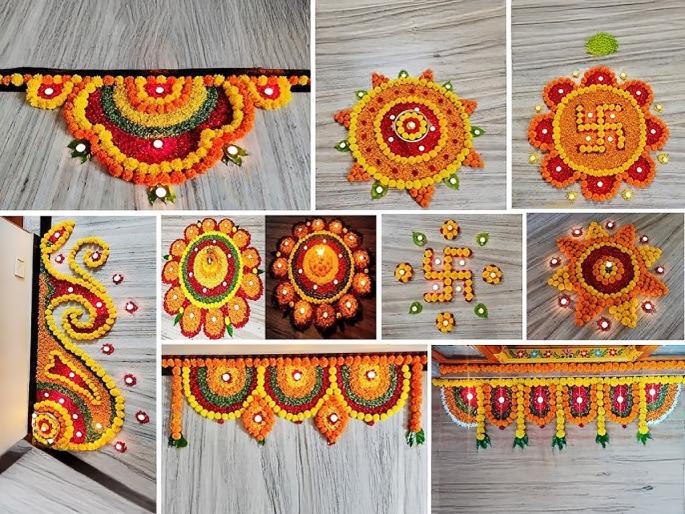 1 / 8अनेकदा रांगोळ्या (Diwali 2025) काढायला आपल्यावेळ नसतो अशावेळी फुलांची रंगोळी काढून तुम्ही सुंदर सजावट करू शकता.रांगोळीसाठी झेंडू, गुलाब, शेंवती, यांसारख्या सहज उपलब्ध असणाऱ्या फुलांची निवड करा.2 / 8 रांगोळी काढण्यापूर्वी सर्व फुलांच्या पाकळ्या व्यवस्थित वेगळ्या करून घ्या. देठ किंवा खराब झालेले भाग काढून टाका.3 / 8गोल, चौकोनी, कमळ किंवा स्वास्तिक किंवा ओम यांसारखे सोपे भूमितीचे आकार निवडा कारण फुलांनी ते भरणं सोपं जातं.4 / 8रांगोळीचे मुख्य डिजाईन आधी खडूनं किंवा रांगोळीच्या पांढऱ्या रंगानं काढून घ्या. ज्यामुळे फुलांची रांगोळी व्यवस्थित आकारात येते. 5 / 8फुलांच्या रंगांचा योग्य मेळ साधा. उदा. मध्यभागी पिवळा झेंडू, त्याला बाहेरून लाल गुलाबाची सीमा आणि त्यानंतर पांढरी शेवंती वापरा. कॉन्ट्रास्ट रंगामुळे रांगोळी अधिक उठून दिसेल.6 / 8पाकळ्या एकावर एक किंवा एका थरात व्यवस्थित दाबून ठेवा जेणेकरून त्या वाऱ्यानं उडून जाणार नाहीत आणि रांगोळीला छान टेक्स्चर मिळेल.7 / 8हिरव्यागार पानांच्या डिजाईन्समध्ये आंब्याची पानं किंवा अशोकाची पानं लहान आतील भागासाठी वापरा यामुळे रांगोळीला नैसर्गिक लूक येतो.8 / 8रांगोळीच्या मध्यभागी दिवा, पणती, कलश किंवा गणपतीची मूर्ती ठेवा. रांगोळी पूर्ण झाल्यावर फुलांवर हलकं पाणी शिंपडा. यामुळे फुलं ताजी राहतात आणि रांगोळी अधिक चांगली राहते. रांगोळीच्या कडांभोवती लगान तेलाच्या पणत्या किंवा टि लाईट कँडल्स ठेवून दिवाळीचा लूक आकर्षक बनवू शकता.