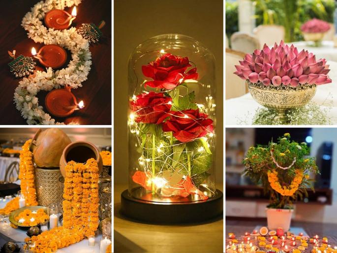 1 / 7दिवाळीमध्ये आपण दारासमोर रांगोळी तर नेहमीच काढतो. पण त्याऐवजी काही फुलं वापरून सुंदर फ्लॉवर डेकोरेशनही करू शकतो. यामुळे नक्कीच तुमच्या घराची सजावट इतरांपेक्षा जास्त आकर्षक आणि सुंदर वाटेल.2 / 7दिवाळीत झेंडू, शेवंती ही फुलं बाजारात भरपूर प्रमाणात असतात. त्यांचा वापर मरून अशी आकर्षक पुष्परचना करता येईल.3 / 7तुम्हाला जर कमळाचं फुल मिळालं तर त्याचा वापर करून अशी छानशी रचना करता येईल. घराच्या मुख्य द्वाराशी तुम्ही अशी रचना करून ठेवू शकता. 4 / 7दिवाळीत आपण घरभर पणत्या लावतो. त्या नुसत्याच जमिनीवर ठेवण्यापेक्षा अशा पद्धतीची रचना करून ठेवल्यास ते अधिक आकर्षक वाटेल. यासाठी तुम्ही मोगरा, जाई, जुई, कुंदा अशी फुलं वापरू शकता. 5 / 7गुलाबाच्या पाकळ्या वापरून यासारख्या अनेक आकर्षक डिझाईन्स करता येऊ शकतात. गुलाबाच्या पाकळ्यांचा गर्द गुलाबी रंग नेहमीच पाहणाऱ्याच्या नजरेला सुखावणारा असतो. 6 / 7तुमच्याकडे कमळ, गुलाब, झेंडू, शेवंती अशी सगळीच फुलं भरपूर प्रमाणात असतील तर अशा पद्धतीचं छानसं डिझाईन काढू शकता. 7 / 7चाफ्याची फुलं, विड्याची पानं यांचा रांगोळीमध्ये किती सुंदर उपयोग करता येतो पाहा.. त्याच्या जोडीला तर आकर्षक झेंडू आहेच..