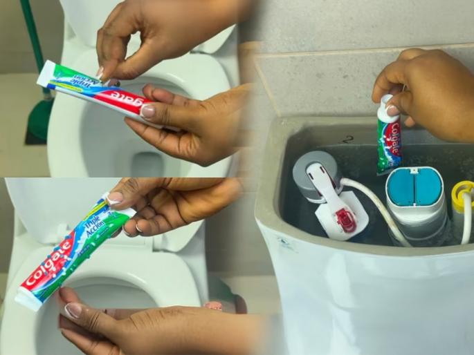 1 / 8दिवसभरात अनेकवेळा वापरल्या जाणाऱ्या कमोडवर पिवळे हट्टी डाग पडणे आणि दुर्गंधी येणे ही एक कॉमन समस्या आहे. हे डाग वेळोवेळी स्वच्छ करणे हे एक मोठे आणि कंटाळवाणे काम वाटते, कारण हे डाग काहीवेळा क्लिनर्सने देखील सहजासहजी निघत नाहीत(how to clean commode with toothpaste).2 / 8परंतु आपण फारशी मेहेनत न घेता आणि अगदी कमी खर्चात टूथपेस्टच्या मदतीने कमोड (New Trick to Brighten Commode with Toothpaste) नव्यासारखा स्वच्छ करु शकता. दात स्वच्छ करण्यासाठी वापरली जाणारी टूथपेस्टच आता तुमच्या बाथरूममधील कमोडला स्वच्छ आणि चकचकीत करु शकते. टूथपेस्टच्या मदतीने कमोड स्वच्छ करण्याच्या हा देसी जुगाड नक्की करुन पाहा... 3 / 8सोशल मिडियावर सध्या एक अनोखा जुगाड मोठ्या प्रमाणावर व्हायरल होत आहे. या व्हिडिओमध्ये, अनेकजण कमोडची स्वच्छता करण्यासाठी टूथपेस्टचा वापर करत आहेत. हे ऐकायला कदाचित विचित्र वाटेल, पण जे लोक ही ट्रिक वापरत आहेत, ते याला खूपच उपयोगी असल्याचे सांगत आहेत. 4 / 8सर्वातआधी कोलगेट टूथपेस्टची ट्यूब घ्या आणि सेफ्टी पिनच्या मदतीने त्या ट्यूबवर लहान छिद्रे करुन घ्यावीत. त्यानंतर ती ट्यूब हलक्या हाताने दाबून त्या छिद्रांमधून थोडीशी टूथपेस्ट बाहेर येऊ द्यावी. यानंतर, ती टूथपेस्टची ट्यूब थेट टॉयलेटच्या फ्लश टँकमध्ये टाकावी. 5 / 8या टूथपेस्टच्या छिद्रांतून थोडी - थोडी टूथपेस्ट बाहेर येईल आणि फ्लश टँकच्या पाण्यांत मिसळेल आणि प्रत्येक फ्लॅशबरोबर तुमचे कमोड स्वच्छ करेल.6 / 8बहुतेक टूथपेस्टमध्ये सौम्य डिटर्जंट आणि क्लिनिंग एजंटचे घटक असतात. फ्लश टँकमध्ये टाकलेली ट्यूब जेव्हा पाण्यात भिजते, तेव्हा प्रत्येक वेळी फ्लश केल्यावर हे घटक पाण्यात मिसळून कमोडमध्ये येतात आणि डाग कमी करण्यास मदत करतात.7 / 8टूथपेस्टमध्ये साधारणपणे पुदिना किंवा इतर सुगंधित तेलं असतात. हे सुगंधित घटक पाण्याच्या माध्यमातून कमोडमध्ये पसरतात, ज्यामुळे टॉयलेटमधील दुर्गंधी कमी होते आणि एक मंद, फ्रेश सुगंध दरवळतो. 8 / 8टूथपेस्टमध्ये असलेले काही घटक जिवाणू आणि जंतूंना वाढण्यापासून रोखण्यास मदत करतात. यामुळे कमोडच्या पृष्ठभागावर जंतूंची वाढ कमी होते आणि स्वच्छता अधिक काळ टिकून राहते.