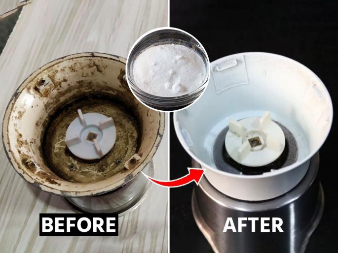 1 / 6आपल्यापैकी अनेकांच्या घरात मिक्सरचा वापर मोठ्या प्रमाणात केला जातो. वाटण करताना किंवा कोणताही पदार्थ बारीक करण्यासाठी याचा वापर होतो. अशावेळी आपण मिक्सरचे भांडे स्वच्छ तर करतो, पण त्याचा तळ मात्र काही स्वच्छ करत नाही. (mixer grinder cleaning)2 / 6मिक्सर जार धुताना बहुतेक लोक तळ स्वच्छ करायला विसरतात. कारण हे स्वच्छ करणं खूप कठीण असतं. अनेकदा याकडे आपण दुर्लक्ष करतो, ज्यामुळे घाण जास्त प्रमाणात साचून त्यावर काळाकुट्ट आणि चिकट थर साचतो.पण या सोप्या टिप्स फॉलो केल्यातर ग्राइंडर स्वच्छ होण्यास मदत होईल. (kitchen cleaning hacks)3 / 6सगळ्यात आधी आपल्याला ब्लेंडर जारच्या तळाला १ चमचा बेकिंग सोडा घाला. मग त्यावर व्हिनेगर घाला आणि या मिश्रणाला ५ मिनिटे तसेच राहू द्या. 4 / 6मग त्यात डिशवॉश टाका. काट्याच्या चमच्याने टिशू पेपरचे चार तुकडे करुन त्याला दुमडा आणि ग्राइंडरच्या खालच्या बाजूने क्लिन करा. 5 / 6त्यानंतर ग्राइंडरच्या खालच्या बाजूला चारही बाजूंनी घासा यामुळे टिश्यू पेपरवर सगळी घाण चिकटेल. 6 / 6ग्राइंडरचा चिकटपणा घालवण्यासाठी आपल्याला ब्रशच्या मदतीने घासाव लागेल. त्यानंतर पाण्याच्या मदतीने धुवा, यामुळे भांड नव्यासारखं चमकेल.