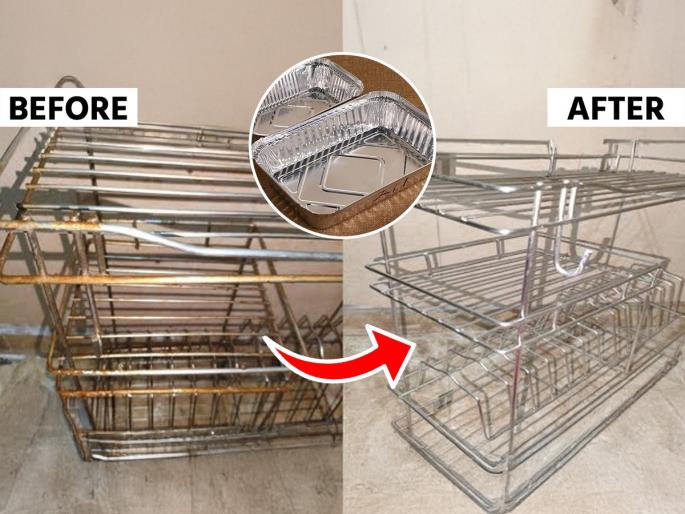 1 / 6स्टीलचे रॅक, स्टीलच्या किचन ट्रॉली, किंवा भांडे ठेवण्यासाठी स्टीलचे मोठेमोठे ट्रे यापैकी एखादी वस्तू तरी आपल्या घरात असतेच.2 / 6ट्रॉली असो, रॅक असो किंवा मोठी स्टीलची जाळी असो, त्यांच्यामध्ये ओले भांडे बऱ्याचदा ठेवले जातात. भांड्यांच्या ओलसरपणामुळे मग त्या वस्तूंवर गंजल्यासारखे लालसर डाग पडलेले दिसतात.3 / 6स्वच्छता वेळच्यावेळी झाली नाही तर ते डाग पक्के होत जातात. ते काढून टाकण्यासाठी मग खूप वेळ आणि मेहनतही लागते. म्हणूनच आता हा एक सोपा उपाय पाहा. 4 / 6हा उपाय करण्यासाठी तुम्हाला साबण, डिटर्जंट असं काहीही वापरण्याची गरज नाही.5 / 6फक्त ॲल्युमिनियम फॉईलचा मध्यम आकाराचा तुकडा घ्या आणि तो थोड्या पाण्यात बुडवून त्याने ट्रॉली घासा.6 / 6अगदी ५ मिनिटांत ट्रॉली, रॅक किंवा स्टीलची जाळी अगदी चकाचक होऊन जाईल. एकदा ट्राय करून पाहा.