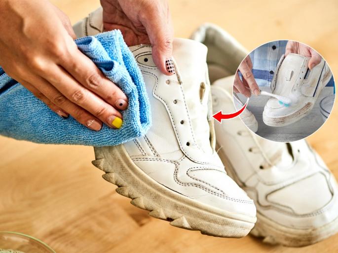1 / 10आपण वेगवेगळ्या ड्रेसवर त्याला मॅच होतील असे फॅशनेबल चपला, बूट घालणे पसंत करतो. आपण कधी कपड्यांच्या रंगांना मॅच होणारे तर कधी कपडयांच्या पॅटर्नला मॅच होणारे शूज घालतो. रंगीबेरंगी चपलांसोबतच आपल्याकडे एक पांढऱ्या चपलांचा किंवा शूजचा जोड असतोच. आपण हे पांढऱ्या रंगांचे शूज किंवा चपला खूप काळजी घेऊन वापरतो. आपल्या पांढऱ्या शूजना किंवा चपलांना कोणत्याही प्रकारचा डाग लागणार नाही याची आपण खबरदारी घेतो. सध्याच्या काळात फॅशन म्हटलं की कपड्यांएवढेच महत्व आपल्या फूटवेअर्सला आहे. फूटवेअर्समध्ये तरुणाईची अधिक पसंती शूजला असते. व्हाईट शूज मग अगदी कन्व्हर्स असो किंवा स्पोर्ट्स प्रत्येक ड्रेससोबत सहज मॅच होतात. व्हाईट शूज जेवढे आपल्या लूकवर कूल दिसतात तेवढेच ते स्वच्छ करणे खूप अवघड होऊन जाते. असे शूज पांढरेशुभ्र असल्यामुळे लवकर खराब असतात किंवा छोटासा डागसुद्धा लवकर दिसून येतो. इतर रंगाचे शूज डागाळले तर त्याकडे इतके लक्ष जात नाही जेवढे व्हाईट शूज खराब झाल्यावर जाते. जोपर्यंत व्हाईट शूजवरचा डाग काढला जात नाही तोपर्यंत ते स्वच्छ दिसत नाहीत आणि पर्यायाने आपण वापरूही शकत नाही. काही सोप्या टीप्स फॉलो करुन आपण आपले पांढरे शूज अगदी सहज स्वच्छ करु शकतो(How To Clean White Shoes At Home).)2 / 10१/२ कप गरम पाण्यात १ टेबलस्पून बेकिंग सोडा, १/२ टेबलस्पून हायड्रोजन पॅरॉक्सइड मिसळून या मिश्रणाची एक जाडसर पेस्ट तयार करून घ्या. एका स्क्रबरवर ही पेस्ट घेऊन पांढऱ्या शूजवर स्क्रब करण्यास सुरुवात करा. जर आपले शूज जास्त मळले असतील किंवा खूप जास्त माती, चिखल चिकटला असेल तर ही पेस्ट जोरात स्क्रब करा. तुमचे शूज जितके मळले असतील त्यानुसार स्क्रब करण्यावर भर द्यावा. 3 / 10पांढऱ्या रंगांच्या शूजवरून हट्टी डाग हटवण्यासाठी आपण बेकिंग सोड्याचा देखील वापर करू शकतो. एक कप पाण्यात २ टेबलस्पून बेकिंग सोडा घालून त्याची एक पातळ पेस्ट करून घ्या. ही पातळ पेस्ट त्या हट्टी डागांवर लावा. ही पेस्ट लावून थोडा वेळ सुकेपर्यंत असेच ठेवून द्या. सुकल्यानंतर एका स्वच्छ सुती कापडाने पुसून घ्या. अशाप्रकारे बेकिंग सोडा वापरून तुम्ही पांढरे शूज स्वच्छ करू शकता. 4 / 10घरात जर एखादा न वापरात येणारा टूथब्रश असेल तर त्याने तुम्ही तुमचे शूज स्वच्छ करू शकता. टूथब्रशचे ब्रेसेल्स हे शूजच्या प्रत्येक कोपऱ्यापर्यंत जाऊ शकतात. म्हणून टूथब्रशचा वापर करून तुम्ही पांढरे शूज साफ करू शकता. 5 / 10जर तुमच्या पांढऱ्या रंगांच्या शूजचा रंग फिका पडला असेल तर टूथपेस्ट आणि डिटर्जंटचा वापर करून तुम्ही त्याची चमक परत आणू शकता. पांढऱ्या शूजवर जिथे डाग आहेत त्या ठिकाणी टूथपेस्ट लावून मग त्यावर डिटर्जंट घाला. त्यानंतर कपडे धुण्याचा ब्रश किंवा टूथब्रश वापरून 