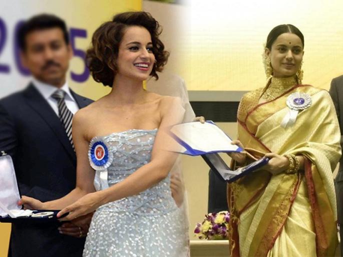 1 / 8 कंगना रनौत हिला यंदाचा उत्कृष्ट अभिनेत्रीचा राष्ट्रीय पुरस्कार जाहिर झाला. कंगनाला चौथ्यांदा राष्ट्रीय पुरस्कार मिळाला असून तिने आपल्या सोशल मीडिया अकाऊंटवर तिचे सोहळ्याच्या लूकमधील फोटो पोस्ट केले. सुरुवातीला मॉडर्न असलेली कंगना आता राजकीय भूमिका म्हणून एकदम इंडियन लूकमध्ये पाहायला मिळाली.2 / 8 मनिकर्णिका - द क्विन ऑफ झाशी (२०१९) आणि पंगा (२०२०) या दोन चित्रपटातील भूमिकेसाठी कंगनाला उत्कृष्ट अभिनेत्री म्हणून पुरस्कार प्रदान करण्यात आला. ६७ व राष्ट्रीय पुरस्कार सोहळ्यात पुरस्कार घेण्यासाठी कंगना चक्क साडी आणि पारंपरिक दागिने घालून हजर असल्याचे पाहायला मिळाले. यावेळी तिने सोनेरी रंगाची साडी नेसली होती. तर त्यावरील गोल्डन सेट, गजरा आणि टिकली हा लूक सर्वांचेच लक्ष वेधून घेणारा ठरला. जशा तिच्या राजकीय भूमिका बदलल्या तसे तिच्या पेहरावातही बदल झाल्याचे पाहायला मिळाले.3 / 8 याआधी सर्वात पहिल्यांदा कंगनाला २००८ मध्ये ५६ व्या राष्ट्रीय पुरस्कार सोहळ्यात फॅशन या चित्रपटातील भूमिकेसाठी गौरवण्यात आले होते. तेव्हा ती अतिशय सामान्य अशा पंजाबी ड्रेसमध्ये हा पुरस्कार घेण्यासाठी गेल्याचे दिसून आले होते. 4 / 8 यानंतर मात्र कंगना जशी प्रकाशझोतात यायला लागली तसा तिचा ड्रेसिंग सेन्स बदलत गेल्याचे पाहायला मिळाले. २०१५ च्या राष्ट्रीय पुरस्कार सोहळ्यात तिला क्विन चित्रपटासाठी उत्कृष्ट अभिनेत्री म्हणून पुरस्कार मिळाला. यावेळी ती लो नेक गाऊनमध्ये पाहायला मिळाली. 5 / 8६३ व्या राष्ट्रीय पुरस्कार सोहळ्यात ती ज्येष्ठ अभिनेते अमिताभ बच्चन यांच्यासोबत दिसली होती. यावेळी तिने घातलेल्या सिल्व्हर रंगाच्या गाऊनवर ग्लिटर होते. तिचा हेयरकटही अतिशय लहान असल्याचे पाहायला मिळाले. 6 / 8 तिसऱ्या राष्ट्रीय पुरस्कारानंतर तिने फॅमिलीसोबत काढलेला एक फोटो समोर आला होता. यात तिचे आई-वडिल, भाऊ आणि बहीण दिसत होते. क्विन चित्रपटानंतर कंगनाला खऱ्या अर्थाने बॉलिवूडमध्ये ओळख मिळाली. 7 / 8 त्यानंतर २०१६ मध्ये कंगनाला पुन्हा तनु वेड्स मनु चित्रपटासाठी उत्कृष्ट अभिनेत्री म्हणून पुरस्कार मिळाला होता. यावेळीही तिने पांढऱ्या रंगाचा एक फॅशनेबल गाऊन घातल्याचे पाहायला मिळाले होते. 8 / 8तत्कालिन राष्ट्रपती प्रणव मुखर्जी यांच्या हस्ते तिला हा ६४ वा पुरस्कार मिळाल्याचे पाहायला मिळाले होते. कंगनाने आतापर्यंत तिच्या अभिनयाच्या जोरावर अनेक पुरस्कार मिळवले आहेत. त्यातील हे राष्ट्रीय पुरस्कार तिच्या कामाची विशेष दखल घेणारे ठरले आहेत.