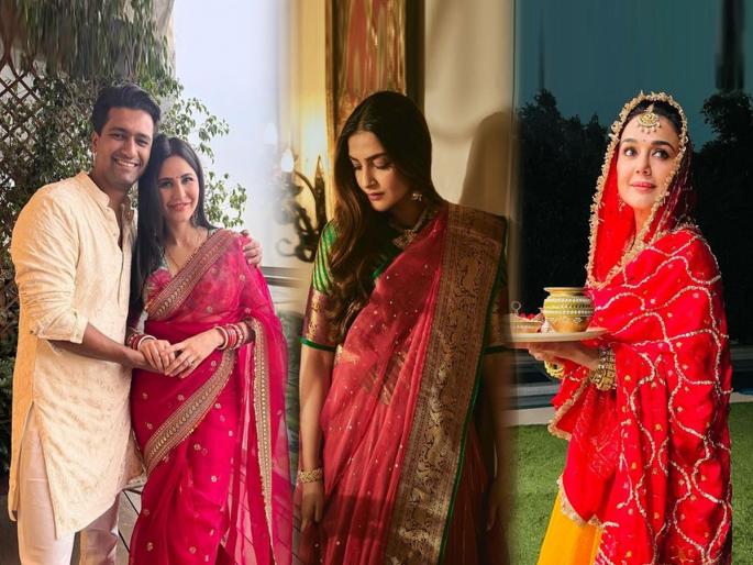 1 / 7१. बॉलीवूड अभिनेत्रींनी करवा चौथ नुकतीच मोठ्या उत्साहात साजरी केली. अंकिता लोखंडे, कतरिना कैफ, आलिया भट यांच्यासारख्या अनेक अभिनेत्रींची ही पहिलीच करवा चौथ असल्याने त्यांचा यावेळचा उत्साह बघण्यासारखा होता.2 / 7२. प्रत्येक सणवार उत्साहाने साजऱ्या करणाऱ्या अंकिता लोखंडेचा करवा चाैथचा थाटही बघण्यासारखा होता. यावेळी तिने नेसलेली नारंगी रंगाची भरजरी साडी आणि त्यावर तिने केलेला शिमरी मेकअप तिच्या सौंदर्याला चार चाँद लावणारा ठरला.3 / 7 ३. अंकिताप्रमाणेच अभिनेत्री कतरिना कैफ हिने देखील यावर्षी पहिल्यांदाच करवा चौथ साजरी केली. कतरिनाने खूप जास्त मेकअप केलेला नव्हता. पण तरीही ती अतिशय मोहक दिसत होती. तिची साडी खूप भरजरी नसली तरी हलके वर्क असणारी लाल- गुलाबी साडी आणि त्यावर हिरवे ब्लाऊज कतरिनाला अतिशय शोभून दिसत होते4 / 7४. मॉनी रॉय हिने करवा चौथनिमित्त काढलेल्या मेहेंदीची तर यंदा चांगलीच चर्चा होती. त्यानंतर तिचा करवा चाैथ स्पेशल लूकही गाजला. हलका अबोली किंवा पीच रंगाच्या तिच्या साडीवर गोल्डन थ्रेडवर्क केलेले होते.5 / 7५. अभिनेत्री प्रिटी झिंटा हिने मात्र पिवळ्या रंगाचा लेहेंगा घातला होता आणि त्यावर तिने लाल ओढणी घेतली होती. ही ओढणी तिने डोक्याभोवती लपेटून घेतली होती. लाल भडक रंगाची ओढणी आणि त्यावर असलेले सोनेरी वर्क यामुळे तिचा चेहरा आणखीनच उजळून गेला होता.6 / 7६. सोनम कपूरही करवा चौथनिमित्त खूप छान सजली होती. तिची साऊथ इंडियन पॅटर्नची साडी तिला अतिशय शोभून दिसत होती. उपवास केला नाही तरी करवा चौथ मात्र छान सेलिब्रेट केली असं सोनम तिच्या पोस्टमध्ये म्हणते आहे. 7 / 7