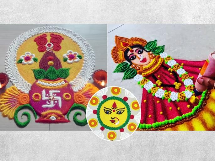 या दिवशी देवीसमोर किंवा दारात रांगोळी काढताना नेमकं काय काढावं असा प्रश्न पडला असेल तर त्यासाठीच आज आपण काही सोपे रांगोळीचे डिझाईन्स पाहणार आहोत.