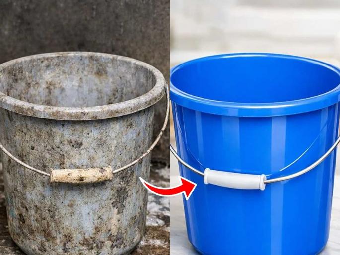 बरेच लोक खराब झालेल्या बादल्या फेकून देतात किंवा महागड्या क्लिनिंग उत्पादनांचा वापर करतात. बादल्या बरेच दिवस स्वच्छ केल्या नाहीतर डाग तयार होतात. हे डाग काढणं खूपच कठीण काम असतं. पण घरातले काही पदार्थ बादल्यांवरील डाग काढून टाकण्याचं काम सोपं करतात. (Effective Ways To Clean Hard Water Stains from Plastic Mugs And Buckets)